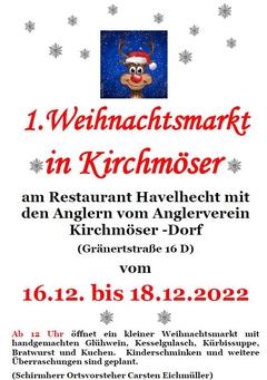Unter der Schirmherrschaft von Ortsvorsteher Carsten Eichmüller laden die Angler vom Anglerheim Kirchmöser-Dorf am Restaurant Havelhecht vom 16. bis 18. Dezember 2022 zum ersten Kirchmöseraner Weihnachtsmarkt ein.