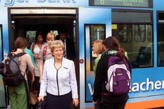 Über die zentrale Lage und der damit verbundenen guten Erreichbarkeit mit dem öffentlichen Personennahverkehr überzeugte sich die Oberbürgermeisterin persönlich und fuhr mit Bürgermeister Steffen Scheller mit der Straßenbahn zur Eröffnung.