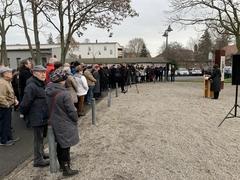 In Gedenken an die Opfer des Nationalsozialismus haben heute Vertreter aus Politik, Verwaltung und Gesellschaft sowie Angehörige von Opfern und Verfolgten des NS-Regimes Kränze an der Gedenkstätte für Opfer der Euthanasie-Morde am Nicolaiplatz niedergelegt.