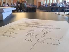 Die Stadtverordnetenversammlung ruft deshalb „die Bürgerinnen und Bürger auf, von ihrem in Artikel 77 der Landesverfassung garantierten Recht auf Mitbestimmung Gebrauch zu machen und das Volksbegehren „Bürgernähe erhalten – Kreisreform stoppen“ zu unterstützen.“