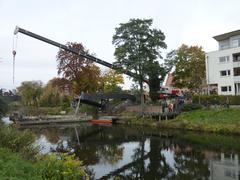 Wichtiger Schritt beim Neubau der Fuß- und Radwegbrücke über den Stadtkanal erfolgreich abgeschlossen. Fertigstellung und Übergabe der Brücke soll noch vor Weihnachten erfolgen.