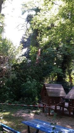Die Stadtverwaltung musste am heutigen Tage den Spielplatz am Heinrich-Heine-Ufer komplett sperren. Vom Baum eines Nachbargrundstückes ist ein Teil der Baumkrone ausgebrochen, so dass damit die Standsicherheit des Baumes nicht mehr gewährleistet ist.