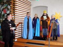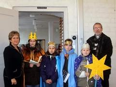 Am Dienstag, 04.01.2011, erhielt Oberbürgermeisterin Dr. Dietlind Tiemann im Altstädtischen Rathaus besuch von den Sternsingern. Gemeinsam mit zahlreichen Mitarbeiterinnen und Mitarbeitern lauschte sie den Liedern, die „Caspar“ (Filipe Delino Maia da Costa), „Melchior“ (Amelie Eggebrecht), „Balthasar“ (Klara Struppek) und der „Sternträger“ (Roman Retsch) gemeinsam mit Pfarrer Matthias Brühe von der katholischen Kirchengemeinde Hl. Dreifaltigkeit vortrugen. Zum Abschluss brachten die Heiligen Drei Könige am Türrahmen zum Bürobereich der Oberbürgermeisterin die traditionelle Segensbitte 20*C+M+B+11 an und baten um eine Spende.