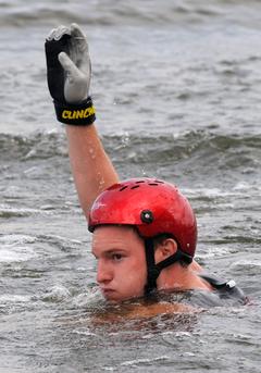 Von der Barfusswasserski-Weltmeisterschaft in Brandenburg an der Havel können am Tag 4 der Wettkämpfe beachtliche Rekorde vermeldet werden. Im JUMP-Semi-Finale der Männer ist David Small (Bilder 1 und 2) aus Großbritannien mit 29,90 m eine neue Weltbestweite gesprungen! Umso beachtlicher ist dieses Ergebnis, weil Minuten zuvor Heinrich Sam aus Südafrika mit 27,80 m die alte Bestmarke von 27,40 m übersprungen hatte, diesen Weltrekord jedoch nur kurz für sich beanspruchen konnte.