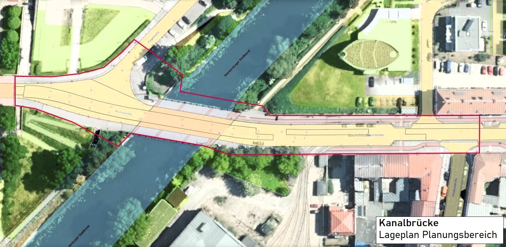 Die Kanalbrücke ist 1928 errichtetet worden und hat das Ende ihrer rechnerischen Lebensdauer erreicht. Ferner ist die Tragfähigkeit und Gebrauchstauglichkeit langfristig nicht mehr gewährleistet. Die Maßnahme erstreckt sich vom Kreuzungsbereich Wredowstraße bis an die Luckenberger Brücke und den Einmündungsbereich der Kanalstraße.