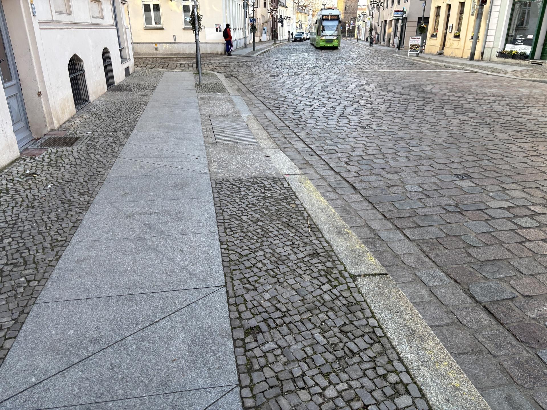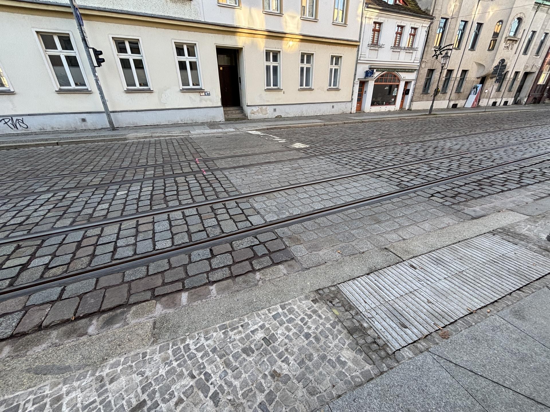 Im Rahmen der Neuverlegung der Fernwärmeleitung durch die Stadtwerke und dem Austausch des Gleisbogens durch die VBBr hat die Stadt Querungshilfen angelegt. Im Kreuzungsbereich Plauer Straße / Ritterstraße wurden mittels Bordabsenkung 2 Übergänge hergestellt, die eine leichtere Querung der Plauer Straße ermöglichen. Der Übergang aus der Wallstraße in Richtung Klosterstraße ist ebenfalls abgesenkt und angepasst worden. In diesen drei Bereichen sind entsprechend den örtlichen Platzverhältnissen, taktile Elemente (Rippenplatten) eingesetzt worden.