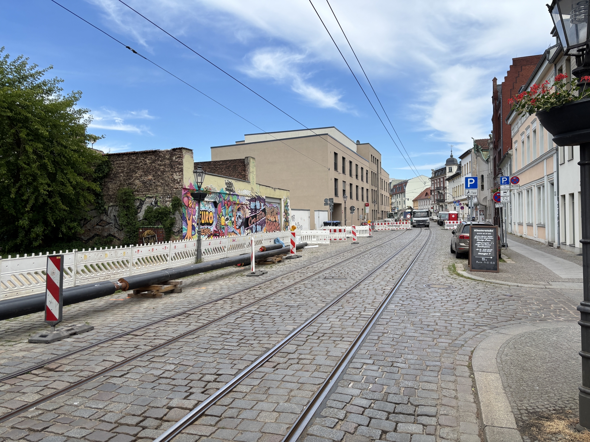 Aufgrund des Alters und des Abnutzungszustandes muss der Gleisbogen ausgetauscht werden. Außerdem erfolgt eine Erweiterung des Fernwärmenetzes zwischen Bergstraße und Plauer Straße Ecke Ritterstraße.