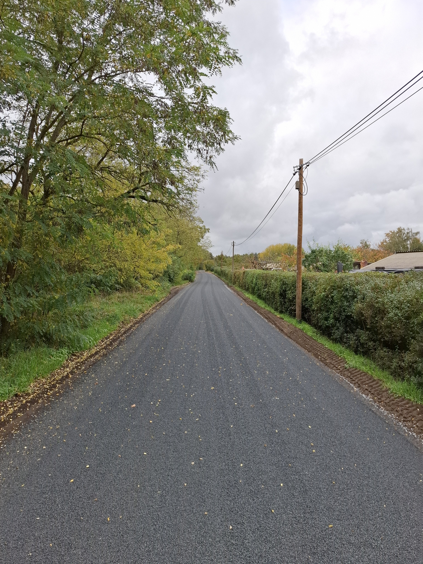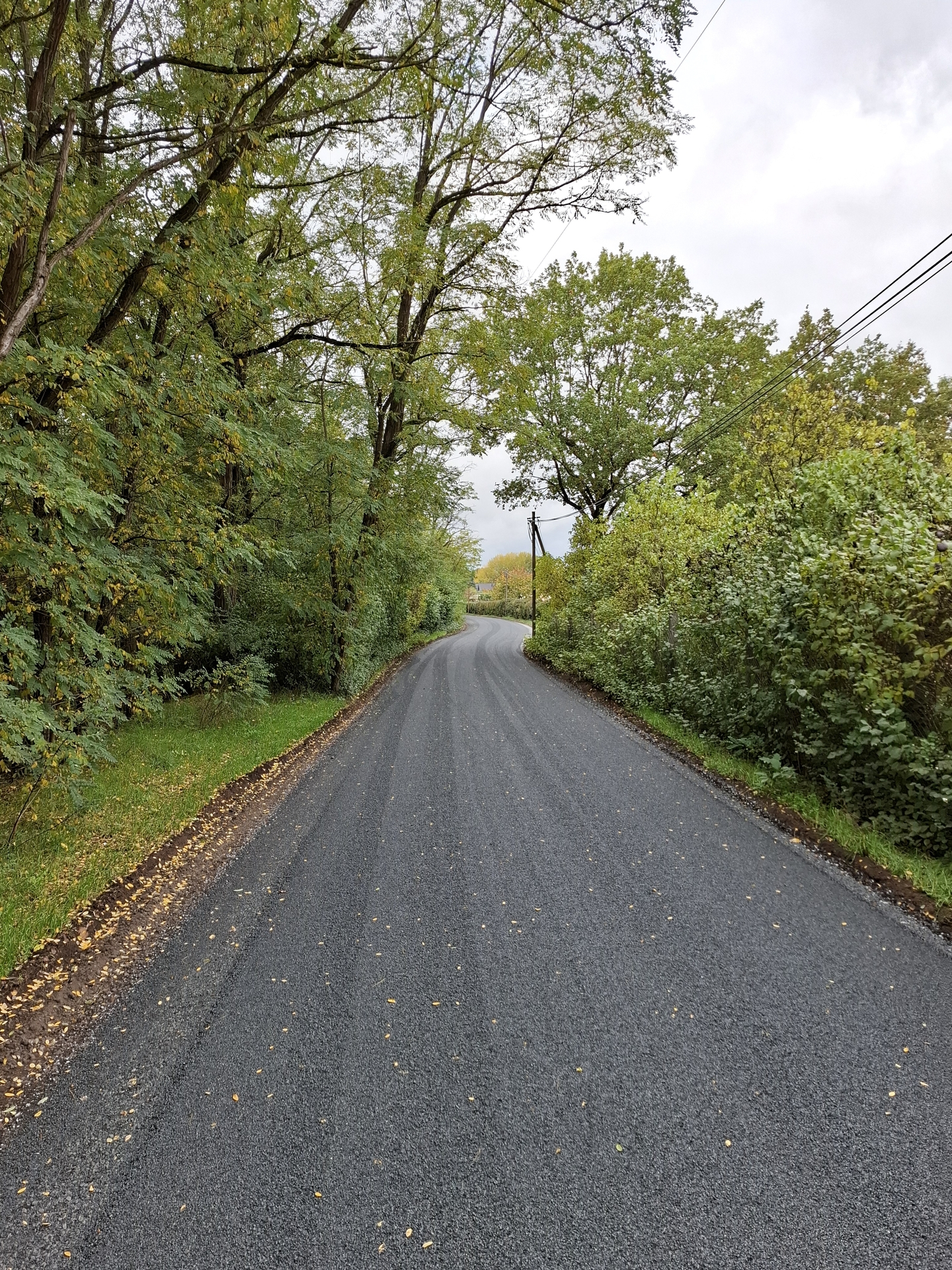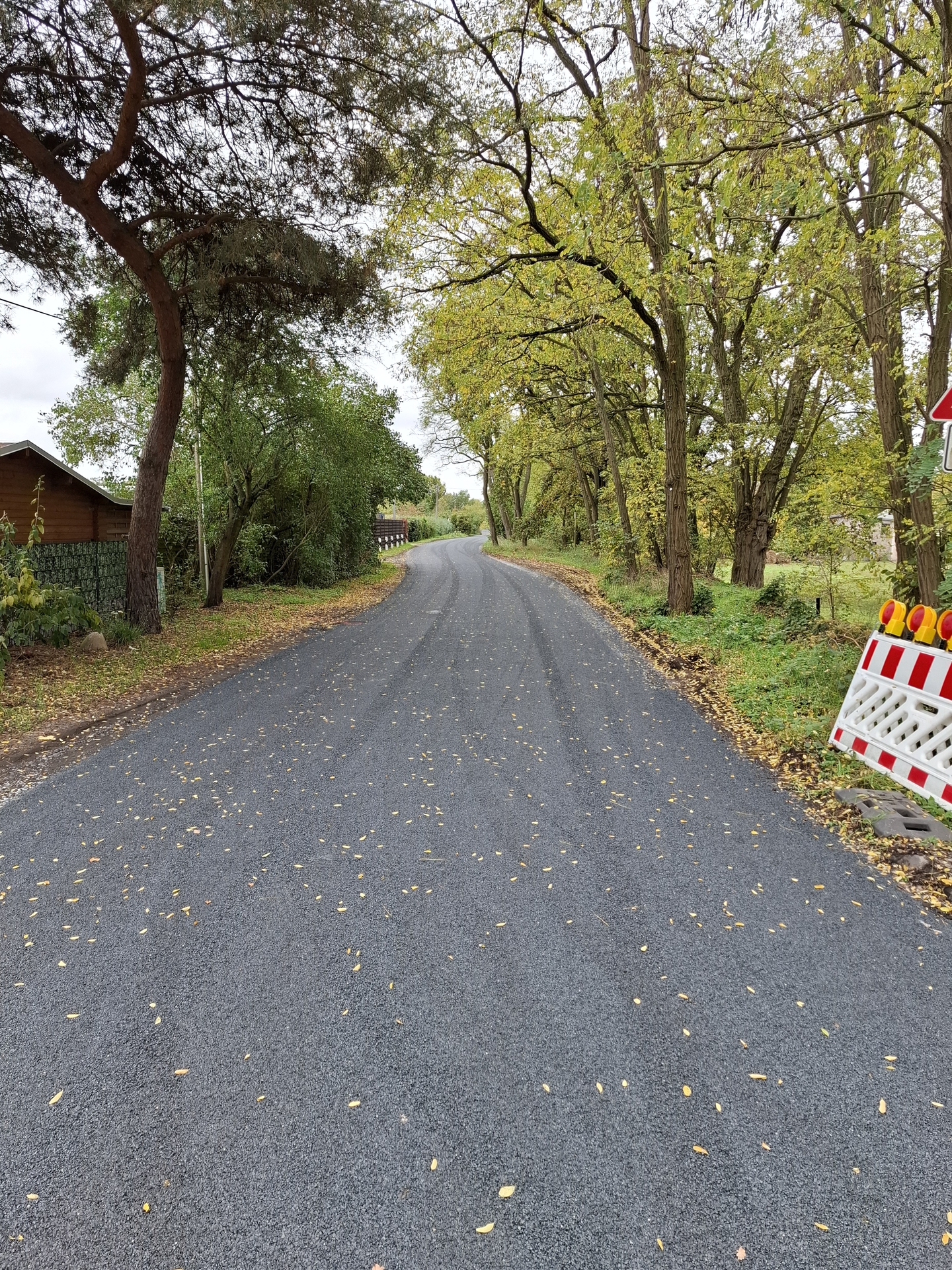 Es ist vorgesehen, dass das im Fahrbahnbereich vorhandene Material gefräst, homogenisiert, profiliert und verdichtet wird. Als Oberfläche wird eine sogenannte Tränkmakadamdecke eingebaut. Dabei handelt es sich um einen lagenweisen Einbau von kornabgestuftem Splitt, die zwischen den Lagen mit Bitumenemulsion gebunden wird. Die Fahrbahn wird ein einseitiges Gefälle erhalten, sodass Niederschlagswasser dorthin entwässern kann.