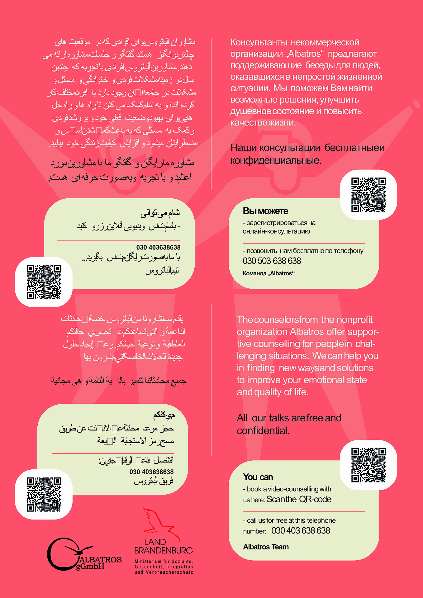 Kostenfreie Video- und Telefon-Beratung für Menschen in schwierigen Situationen (psychosoziale Beratung in verschiedenen Sprachen)
