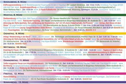 Veranstaltungsankündigung und Programm der 20. Brandenburgischen Frauenwoche in Brandenburg an der Havel