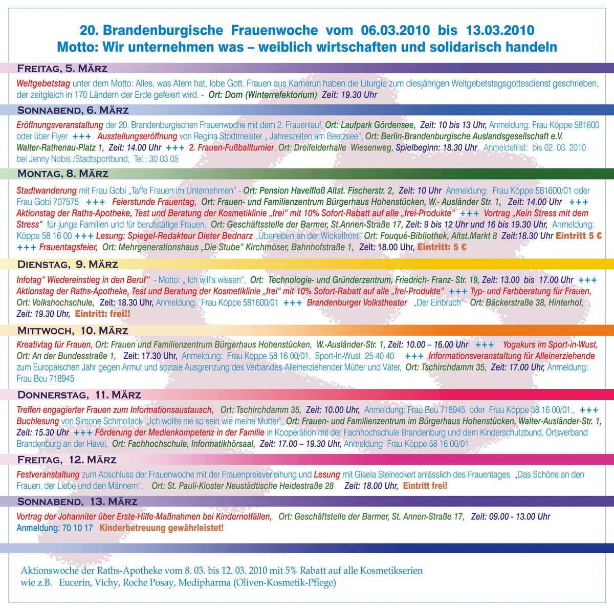 Kernzeit der 20. Brandenburgischen Frauenwoche: 4. – 14. März 2010