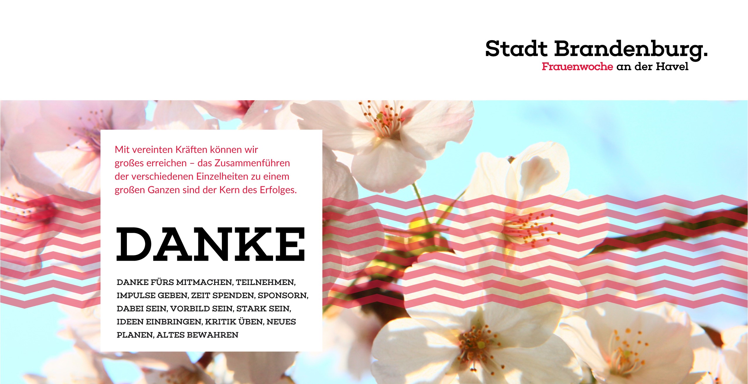 Durch die Mitwirkung der Bürgerinnen und Bürger aus der Stadt Brandenburg an der Havel, aus Frauenvereinen und Frauengruppen, freien Trägern und Brandenburger Einrichtungen, Institutionen und wirtschaftlichen Unternehmen ist es uns wieder einmal gelungen, ein abwechslungsreiches Programm auf die Beine zu stellen.
