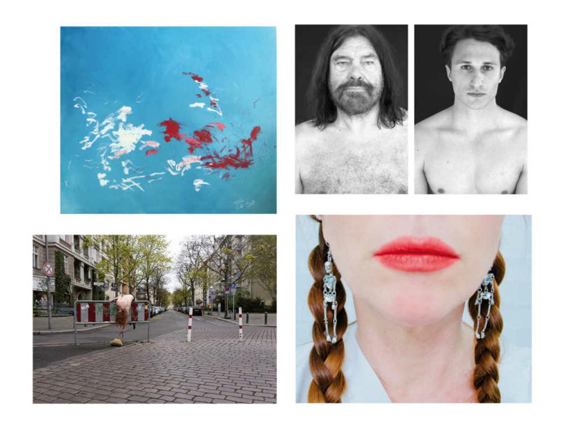 Saskia Barth, Lilo C. Karsten, Carla Pohl, Tanja Wekwerth:4Fraun. Auf dem Weg. Zu neuen Ufern,anderen Zielen. Immer. Erspüren Unbekanntes. Finden Verborgenes. Erreichen Unmögliches. Und teilen mit unsWunderbares,Magisches. Auf Papier. Auf Leinwand und Metall.Mit Holz. Mit Objekten und Mobiliar. Setzenentscheidende „Zeichen an der Wand“.