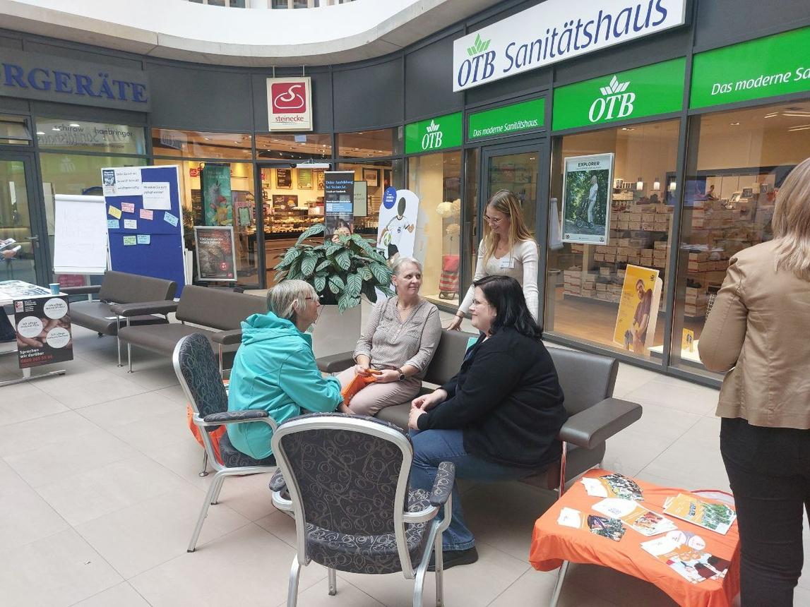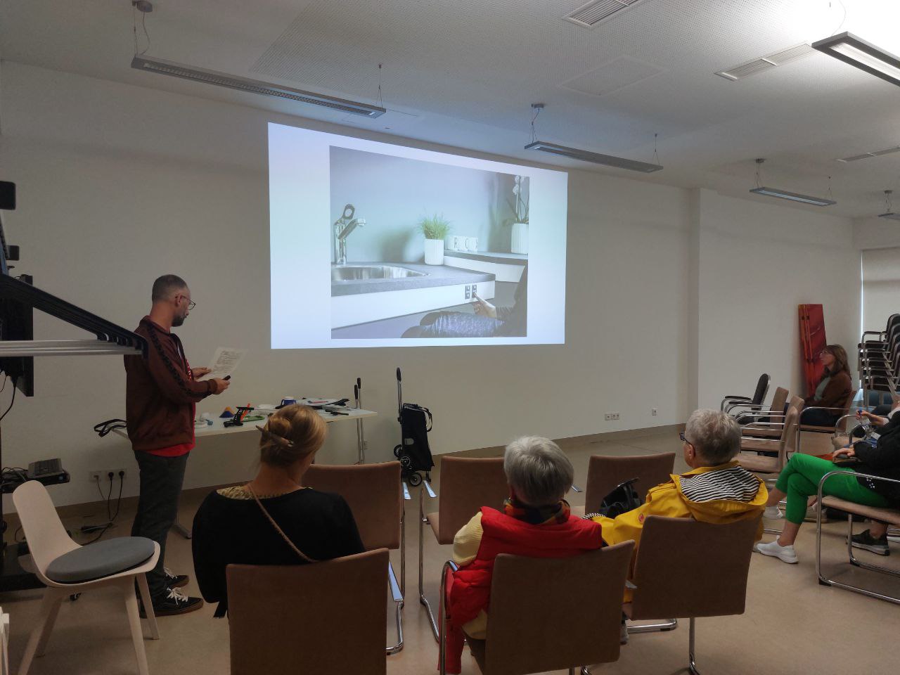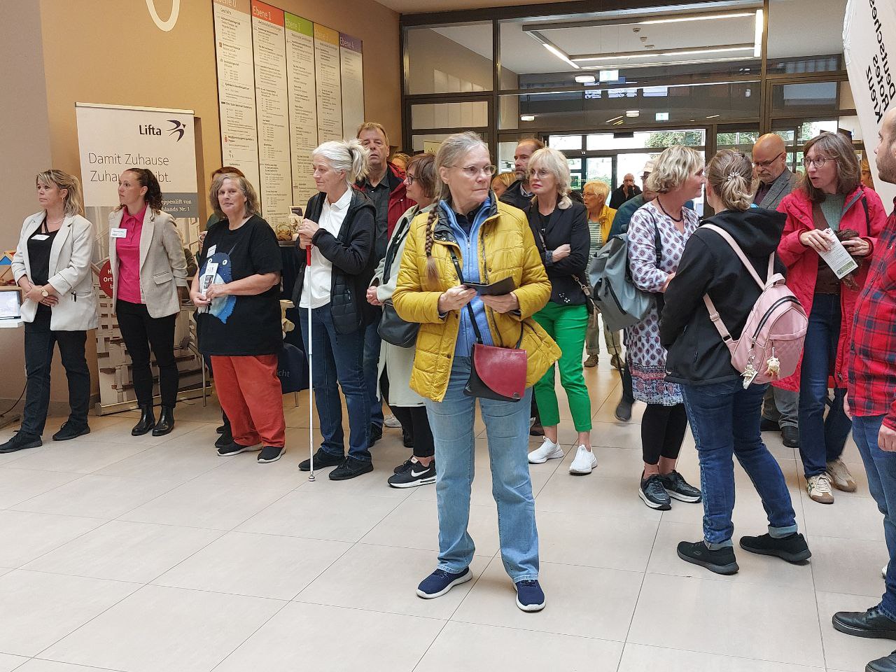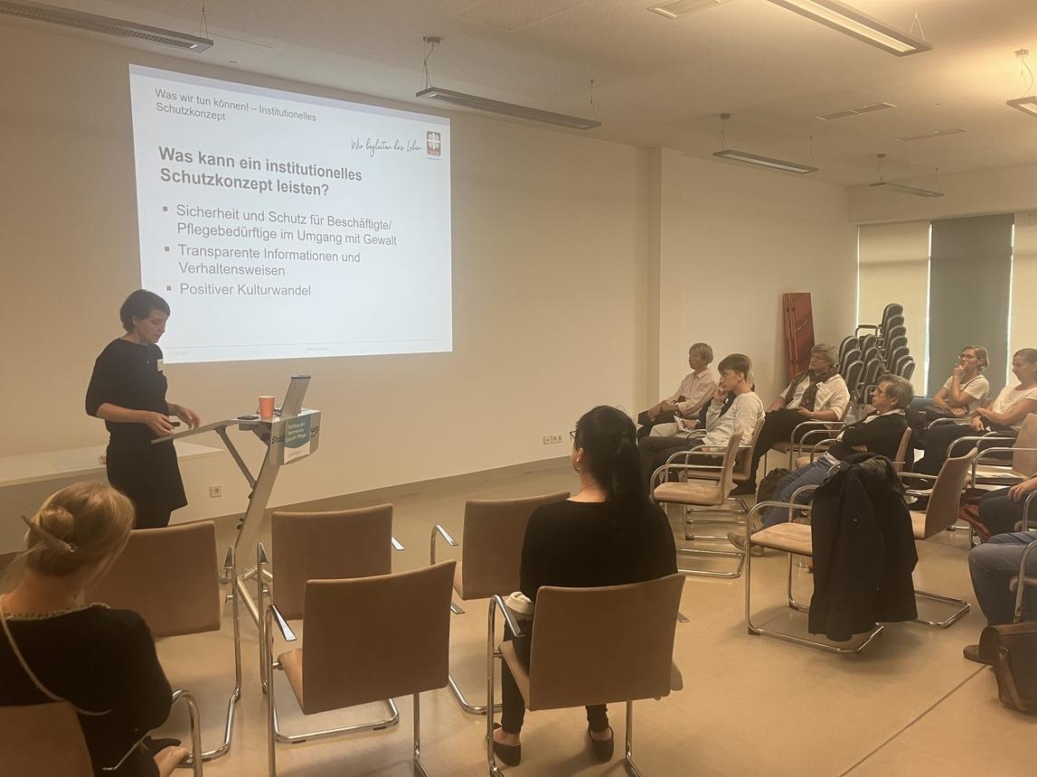 Sehr gut besucht waren auch die beiden Vorträge im Konferenzraum. Sebastian Zeiler vom Pflegestützpunkt der Stadt referierte zum Thema „Wohnraumanpassungen im Fall der Pflege“ und Stefanie König, Einrichtungsleiterin des Caritas-Seniorenzentrums St. Benedikt stellte das Gewaltschutzkonzept ihrer Einrichtung vor und trat zum Thema Grenzüberschreitungen in der Pflege mit den Anwesenden in den Austausch.