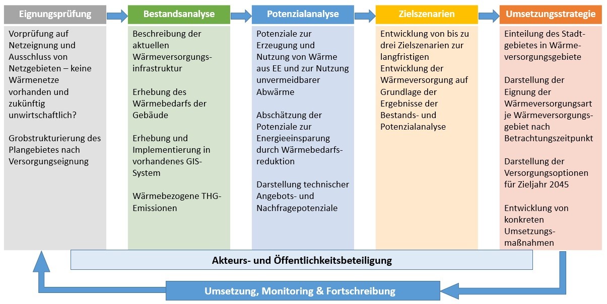 Die kommunale Wärmeplanung nach lässt sich grob in die folgenden Phasen unterteilen: