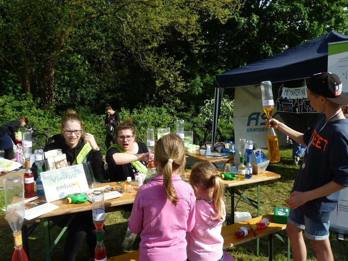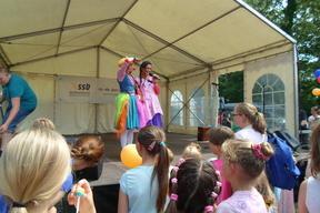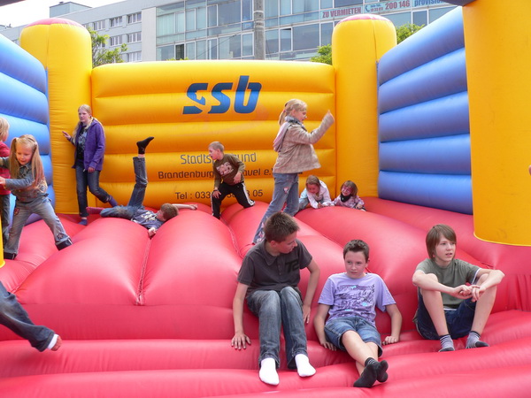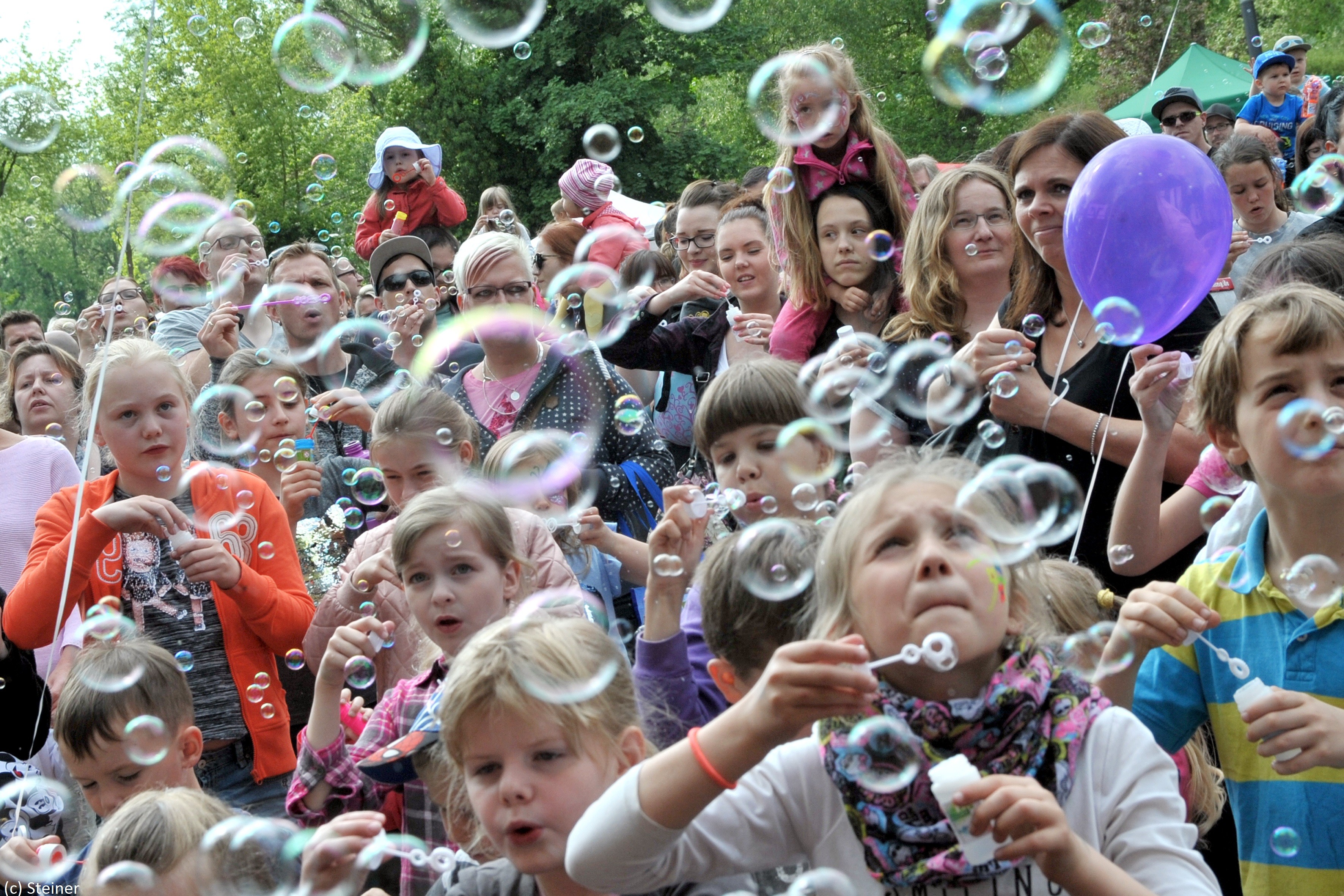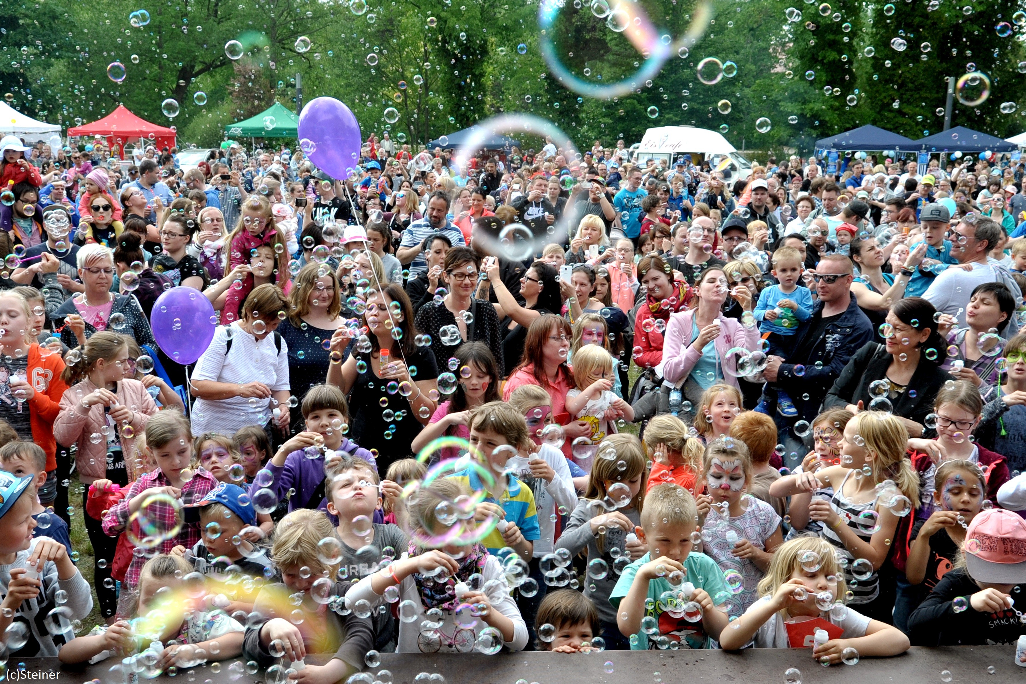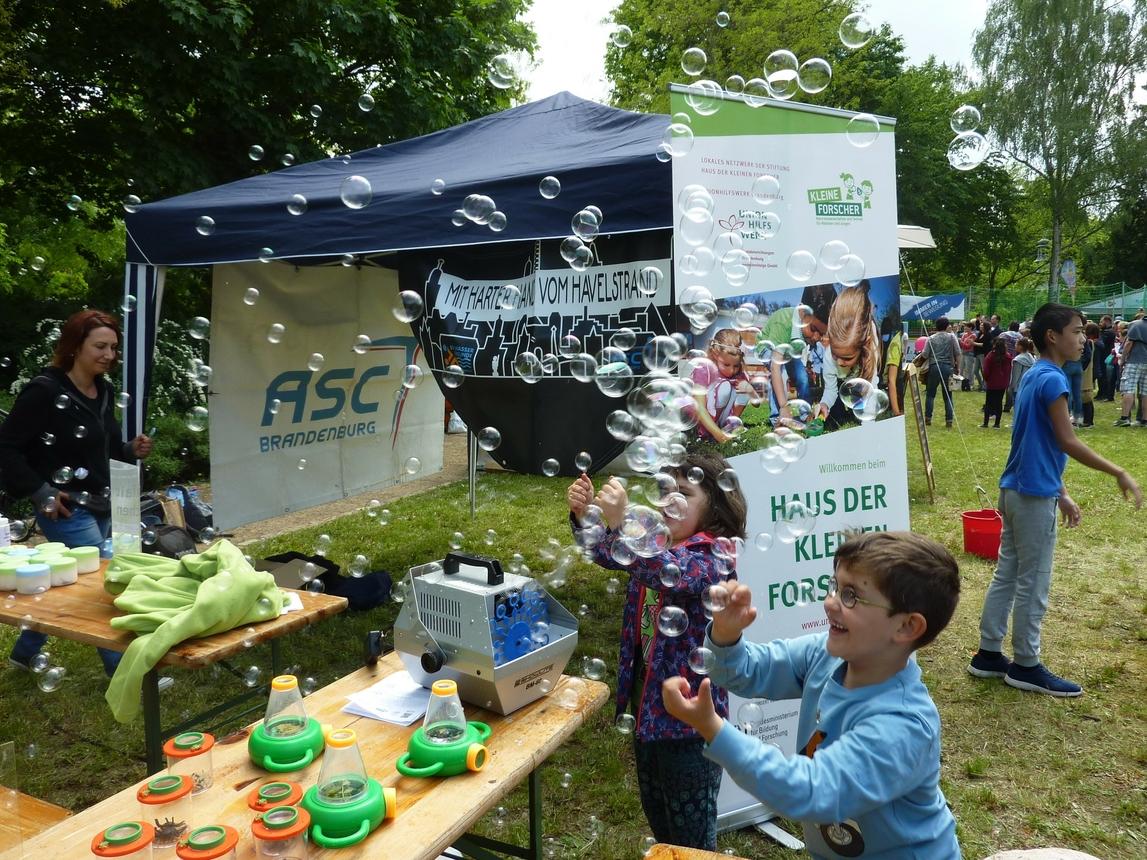Bei schönstem Wetter sorgten auf der Festwiese des Marienberges wiederholt die verschiedensten Vereine und Organisationen der Stadt Brandenburg dafür, dass viele Kinderaugen um die Wette strahlten … als unter anderem beim Seifenblasen-Flashmob der Himmel über dem Marienberg in ein schillerndes und glitzerndes Meer aus Seifenblasen verwandelt wurde.