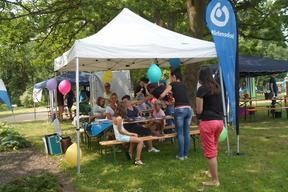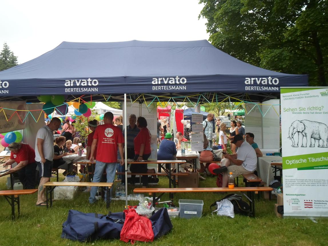 Das Lokale Bündnis für Familie der Stadt Brandenburg an der Havel war dabei und unterstützte bei Mitmachangeboten als Helfer/-innen, organisierte den Kuchenbasar, erfreute mit Kinderschminken die Herzen und Gesichter unserer Jüngsten, stellte Projekte zum experimentieren vor, zeichnete sich verantwortlich für die Ausstellung der Sportabzeichenurkunden und war sehr hilfreich in technischen Fragen vor Ort.