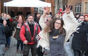 Am 14. Februar 2018, beteiligten sich Brandenburgerinnen und Brandenburger vor dem Altstädtischen Rathaus tanzend an der Aktion „One billion rising“, um auf die Gewalt an und Diskriminierung von Frauen und Mädchen aufmerksam zu machen.