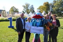 Neben den Glückwünschen gab es auch einen Scheck i.H.v. 1.000 EUR von der Mittelbrandenburgischen Sparkasse über den sich Carmen Dippel und ihr Ehemann Wolfgang freuen konnten. Beide wollen die Bundesgartenschau 2015 Havelregion bis Sonntag mit Fahrrad und Auto erkunden.