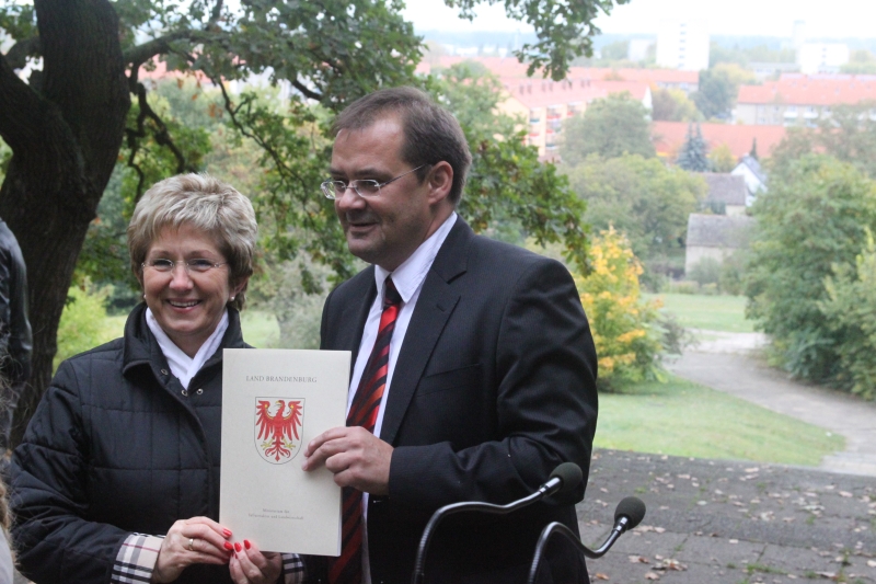 Bereits im Juni 2012 hatte Infrastrukturminister Jörg Vogelsänger den Förderbescheid zur Umgestaltung und Aufwertung des Marienbergs an die Oberbürgermeisterin übergeben.
