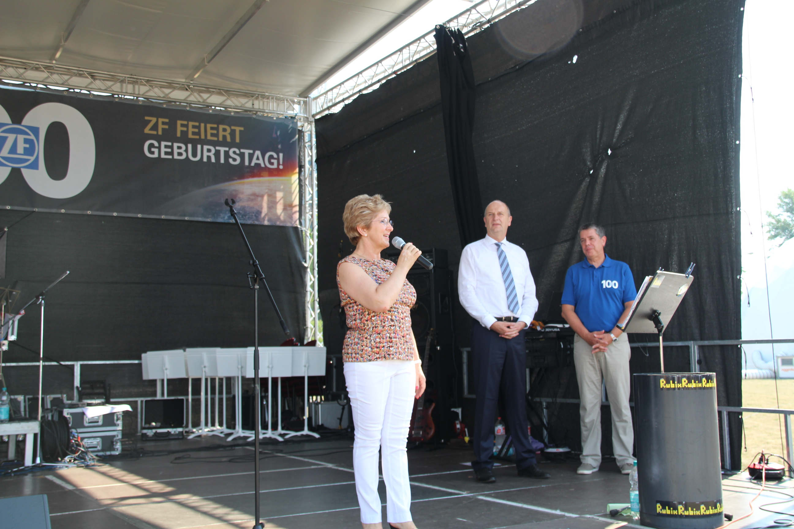 In ihrem Grußwort lobte die Oberbürgermeisterin das soziale und gesellschaftliche Engagement des Unternehmens in der Havelstadt. „Brandenburg an der Havel, landesweit einer der wichtigsten Standorte für das verarbeitende Gewerbe, ist stolz und dankbar zugleich, Sitz eines solch anerkannten und geachteten Unternehmens zu sein. Ich wünsche unserem Brandenburger Werk und der ZF Friedrichshafen AG, dass alle in Angriff genommen Pläne erfolgreich umgesetzt werden können und dadurch die 100jährige Firmengeschichte erfolgreich fortgeschrieben wird.“