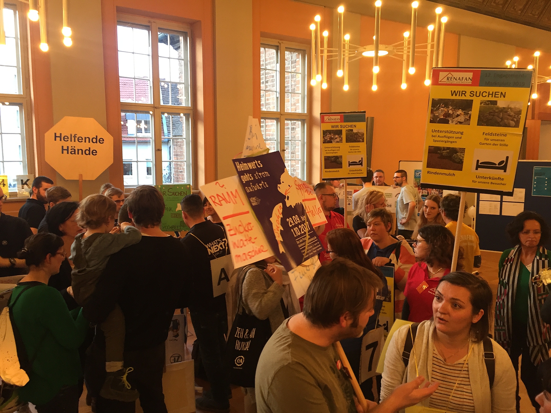 Getreu dem Motto „Ein Gewinn für alle!“ fand am Mittwoch, 13. März 2019, unter der Schirmherrschaft von Oberbürgermeister Steffen Scheller der 12. Engagement-Marktplatz im Rolandsaal des Rathauses statt. Unternehmen und gemeinnützige Einrichtungen handelten miteinander Tauschvereinbarungen aus. Das Besondere am Engagement-Marktplatz ist der Handel ohne Geld. Es werden nur Leistungen ausgetauscht.
