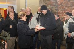 Oberbürgermeisterin Dr. Dietlind Tiemann überreichte als Dankeschön für die Bereitschaft der Eigentümer Familie Freese/Feelgood, ihr Wohnhaus der Öffentlichkeit zu präsentieren, die Denkmalplakette.