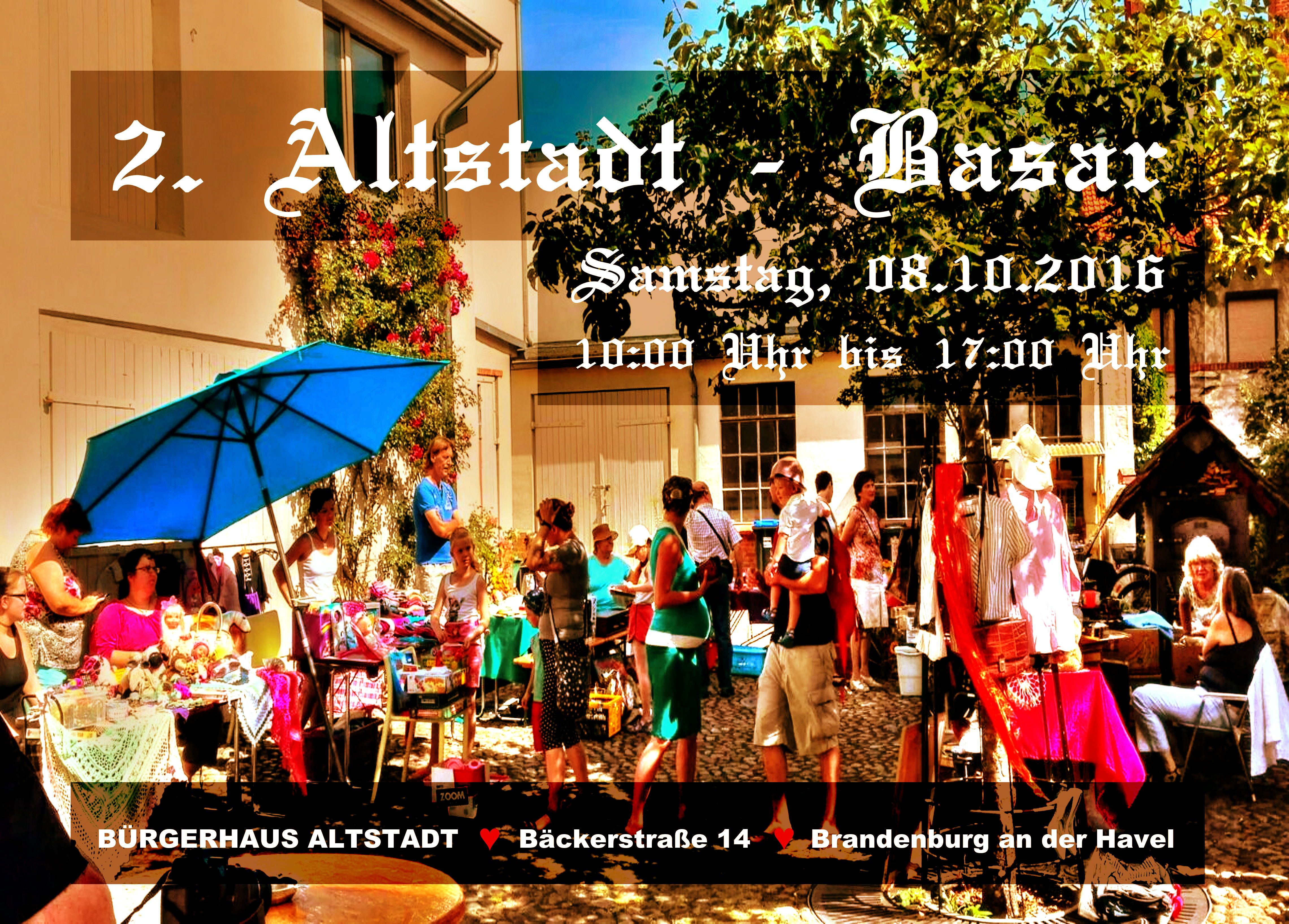 Bereits zum zweiten Mal findet im Bürgerhaus der historischen Altstadt von Brandenburg an der Havel am Samstag, dem 8. Oktober 2016 in der Zeit von 10:00 Uhr bis 17:00 Uhr der Altstadt-Basar statt.