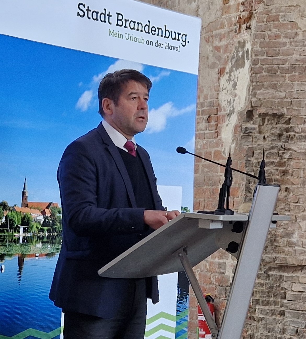 Oberbürgermeister Steffen Scheller beteuerte, dass das vertraute Sprichwort, „Reisende soll man nicht aufhalten“, für Brandenburg an der Havel nicht gelte. Im Gegenteil,