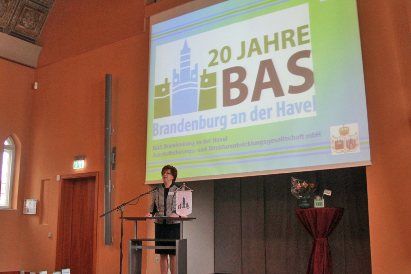 Oberbürgermeisterin Dr. Dietlind Tiemann dankte in ihrem Grußwort der Geschäftsführerin und allen Mitarbeiterinnen und Mitarbeitern für die geleistete Arbeit. Sie brachte zum Ausdruck, dass die BAS GmbH in den zurückliegenden Jahren einen wichtigen Beitrag zur Entwicklung der sozialen, touristischen, kulturellen und ökologischen Infrastruktur in der Stadt geleistet hat und zu einem festen Bestandteil des gesellschaftlichen Lebens und der Wirtschaft in Brandenburg geworden ist.