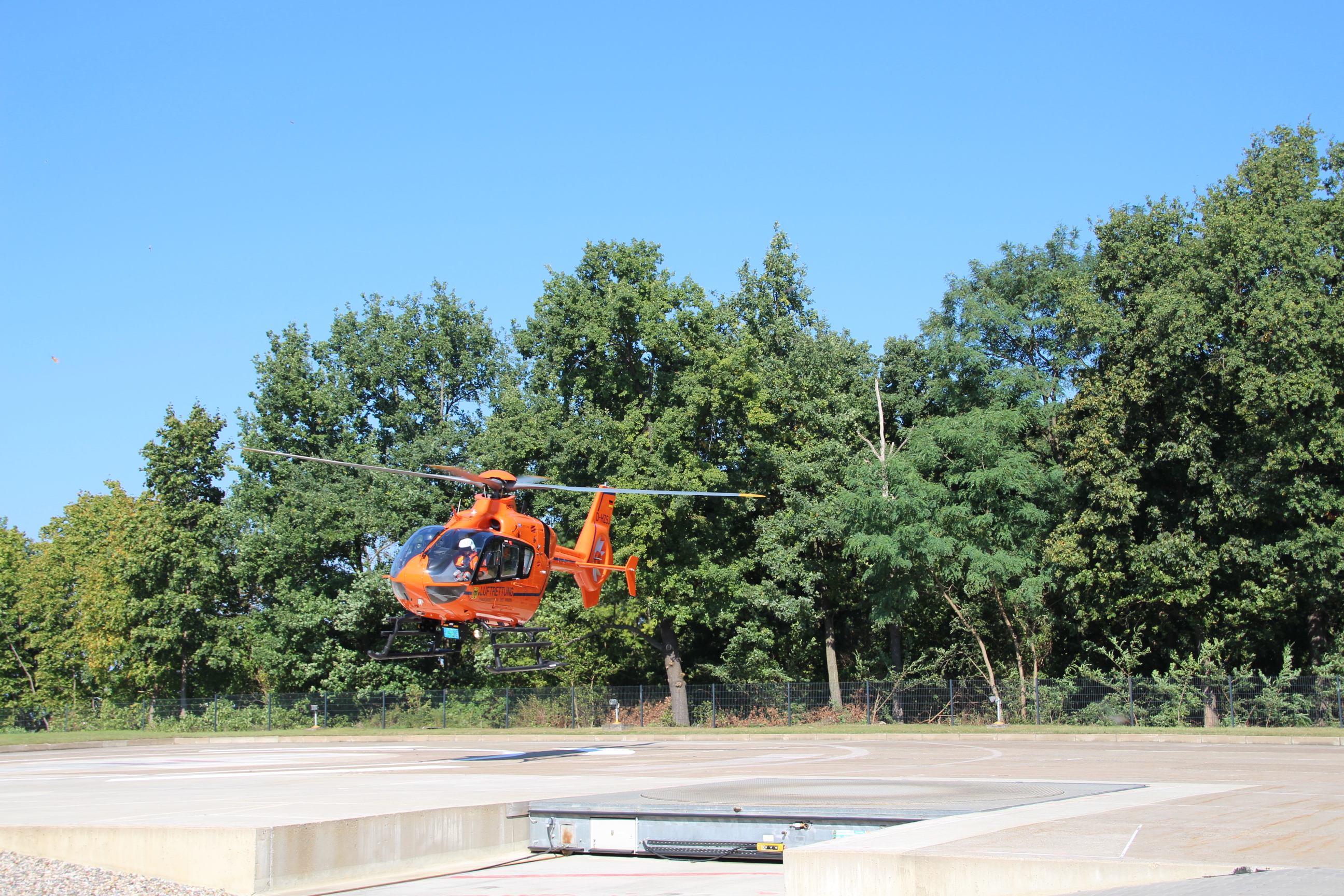 Am 14. September 1994 wurde der moderne für 1,8 Mio. DM fertig gestellte Hangar offiziell seiner Bestimmung übergeben. Seither wurden mit dem Hubschrauber Christoph 35 über 23.000 Einsätze geflogen. Eine deutliche Verbesserung für Patienten und Personal brachte der Bau der Brücke zur Anbindung ans Klinikum im Jahr 2000.