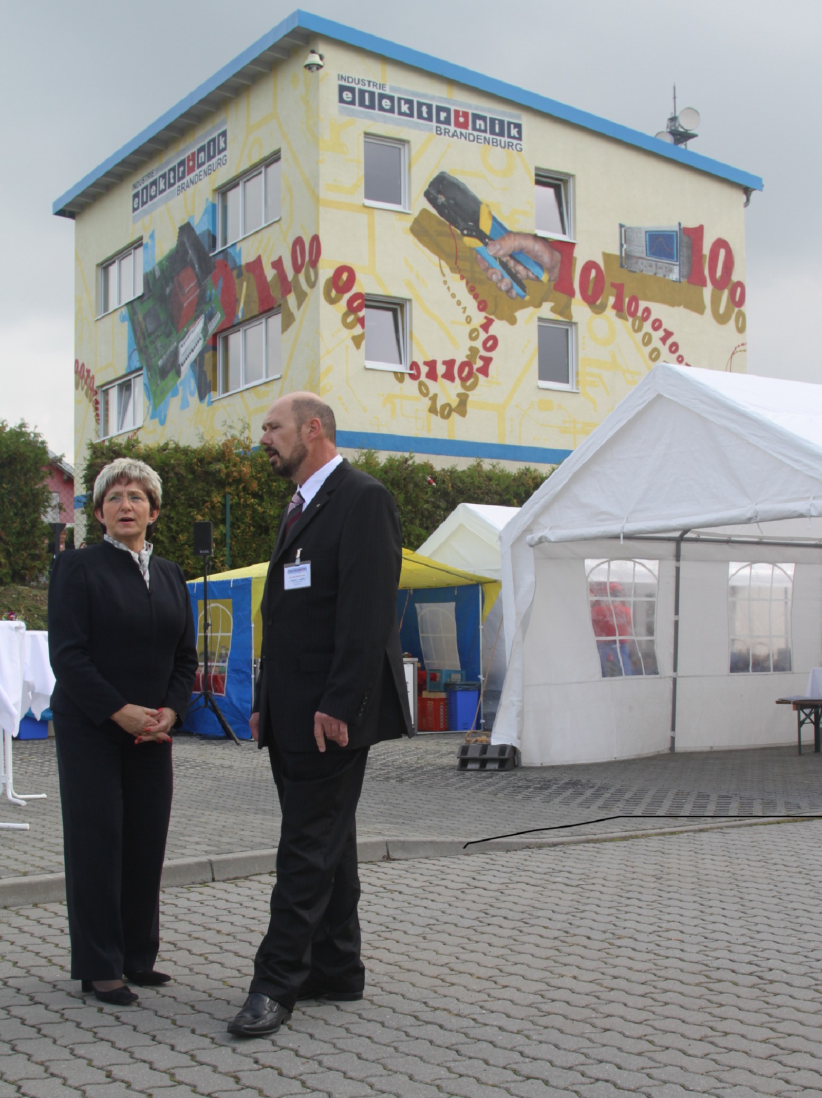 Die Industrieelektronik Brandenburg GmbH feierte am 10. September auf ihrem Betriebsgelände ihren 20. Geburtstag. Oberbürgermeisterin Dr. Dietlind Tiemann gratulierte Geschäftsführer Ralf Hermann stellvertretend für die Geschäftsleitung zum Jubiläum. „Ich freue mich, dass Sie auch nach 20 Jahren noch am Standort Brandenburg an der Havel sind. Die kleinen und mittelständischen Unternehmen, die in unserer Stadt angesiedelt sind, haben die Krise ganz gut überstanden.“ Weiter sagte Tiemann: „Es ist nur bedauerlich, dass mit Beschluss der Stadtverordnetenversammlung der Gewerbesteuerhebesatz erhöht wurde, obwohl sich in den vergangenen Jahren bei gleichem Hebesatz die Gewerbesteuereinnahmen nahezu vervierfacht haben."