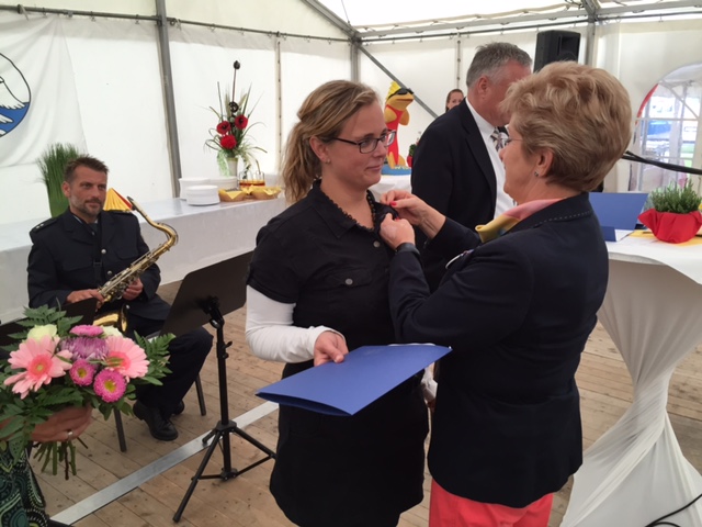 In ihrem Grußwort dankte die Oberbürgermeisterin den Mitgliedern der DLRG vor Ort und sagte: „Diese Leistungen, die Sie Tag für Tag erbringen, aber auch Ihre Bereitschaft, für andere Menschen da zu sein und Jahr für Jahr unzählige Stunden auf eine ehrenamtliche Tätigkeit zu verwenden, Sie verdienen jede Anerkennung.“ Weiter sagte sie: „ Ich freue mich, Ihre Tätigkeit heute öffentlich würdigen zu können. Sie sehen Ihr ehrenamtliches Engagement, wie ich weiß, als selbstverständlich an, so, wie es auch die vielen Zehntausenden Menschen bundesweit tun, die heute in der DLRG aktiv sind. Aber so selbstverständlich ist das nicht. Ihr Verhalten, liebe Mitglieder, beweist viel Verantwortungsbewusstsein, es ist Ausweis von Bürgersinn.“