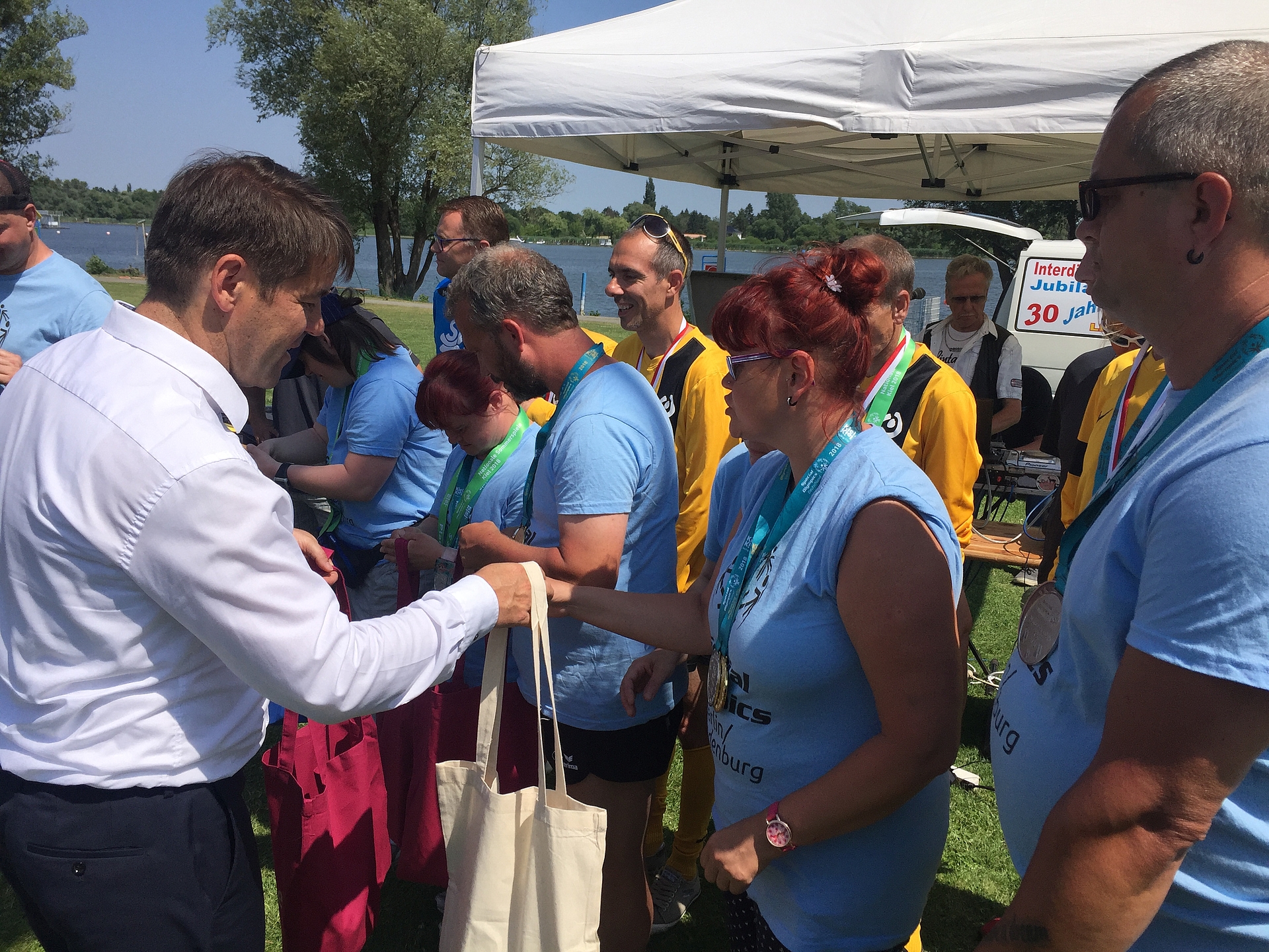 Mit einem Sommerfest an der Regattastrecke feierten am Donnerstag, 07.06.2018, Mitarbeiterinnen und Mitarbeiter, Freunde und Unterstützer das 25-jährige Bestehen der Lebenshilfewerkstatt für Menschen mit Behinderungen gGmbH und die erfolgreiche Teilnahme der Lebenshilfesportler an den Nationalen Sommerspielen Special Olympics 2018 in Kiel.