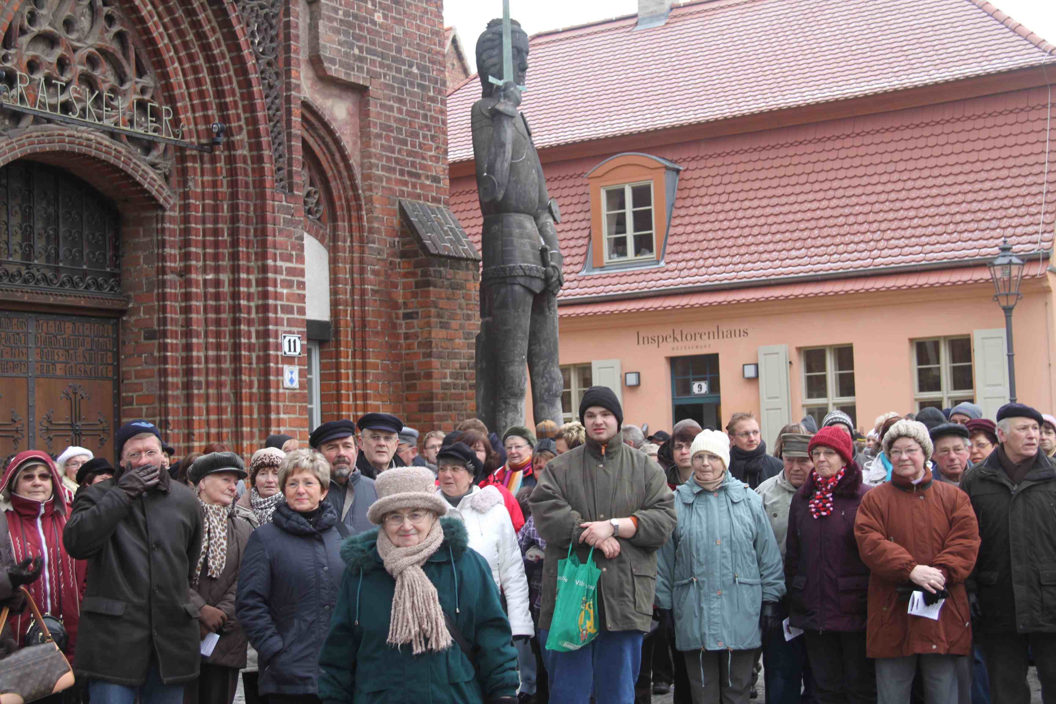 Am Samstag, den 19. Februar 2011 trafen vor sich dem Altstädtischen Rathaus ca. 200 bis 300 Interessierte zum bereits 6. Stadtspaziergang. Oberbürgermeisterin und Schirmherrin Dr. Dietlind Tiemann, lief natürlich mit und dankte der Stadtführerin Gabriele Gobi für ihre Unterstützung und ihren Geschichten zur Stadt.