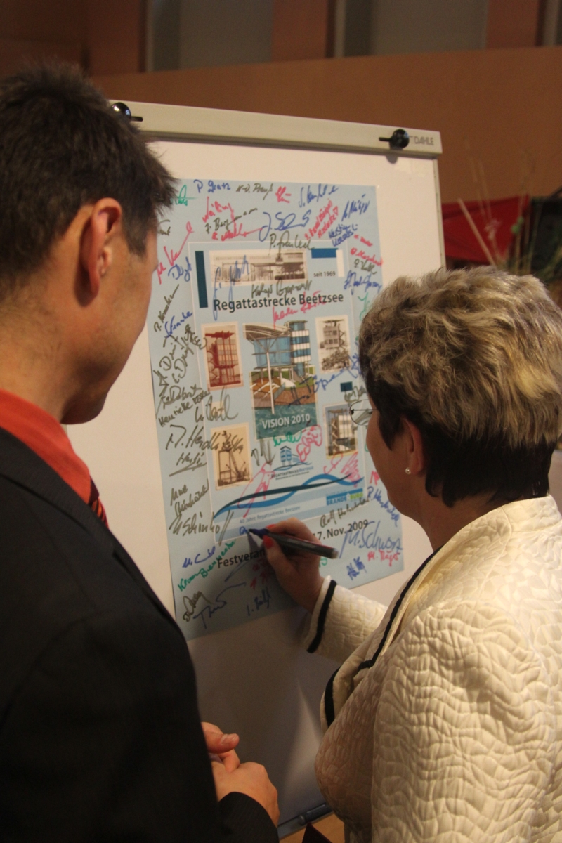 Und natürlich ging die Oberbürgermeisterin auch auf die umfangreichen Baumaßnahmen zur Sanierung und Modernisierung der Sportstätte und die erfolgreiche Durchführung der internationalen Meisterschaften 2005, 2008 und 2009 in Brandenburg an der Havel ein, die den guten Ruf der Regattastrecke „Beetzsee“ als weltweit anerkannter Wettkampfort bestätigt haben.