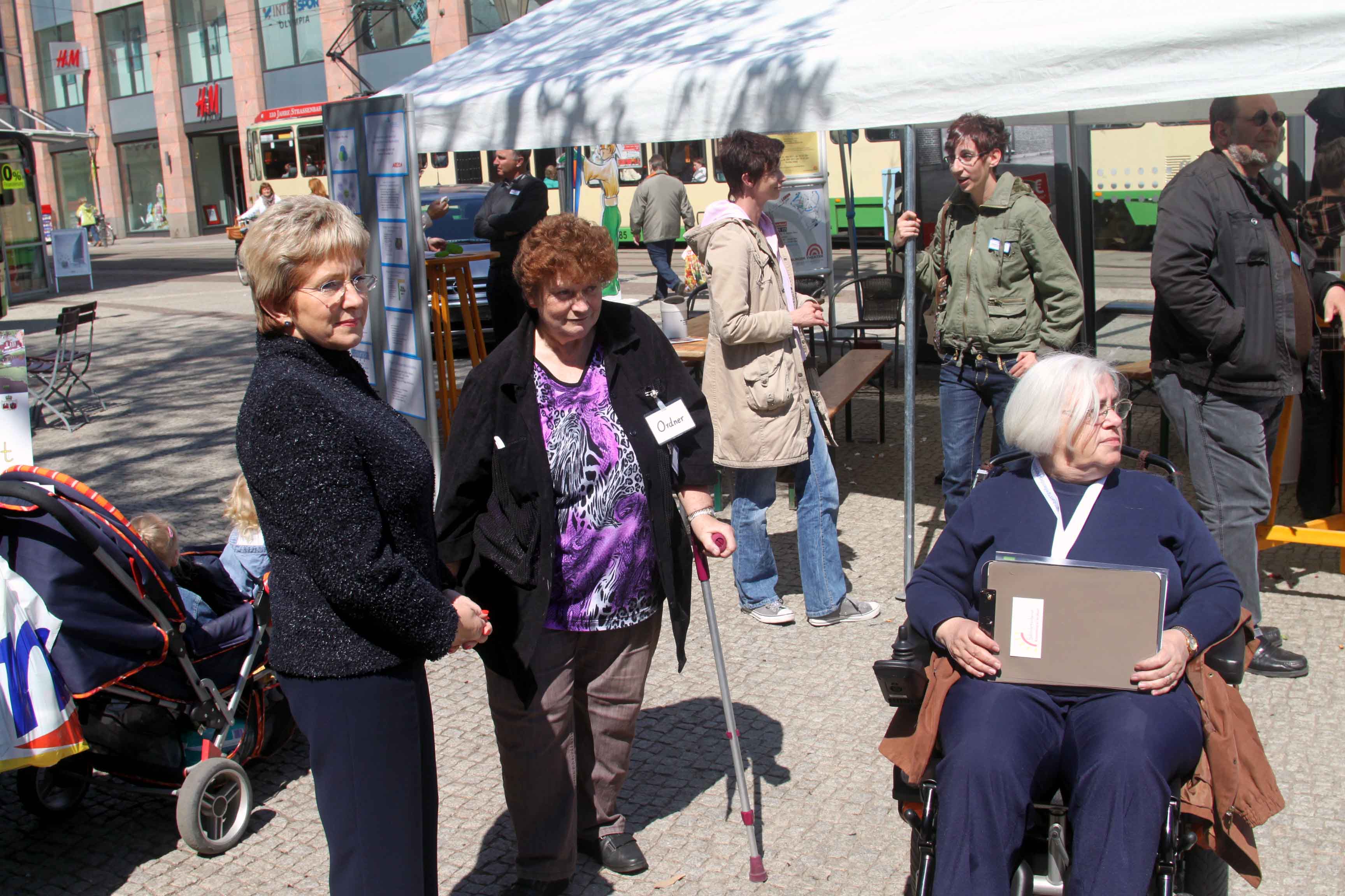Oberbürgermeisterin Dr. Dietlind Tiemann und der Bürgermeister Herr Steffen Scheller informierten sich im Gespräch mit den Standbetreuern, Organisatoren und Betroffenen über die Forderungen und Probleme behinderter Bürgerinnen und Bürger.