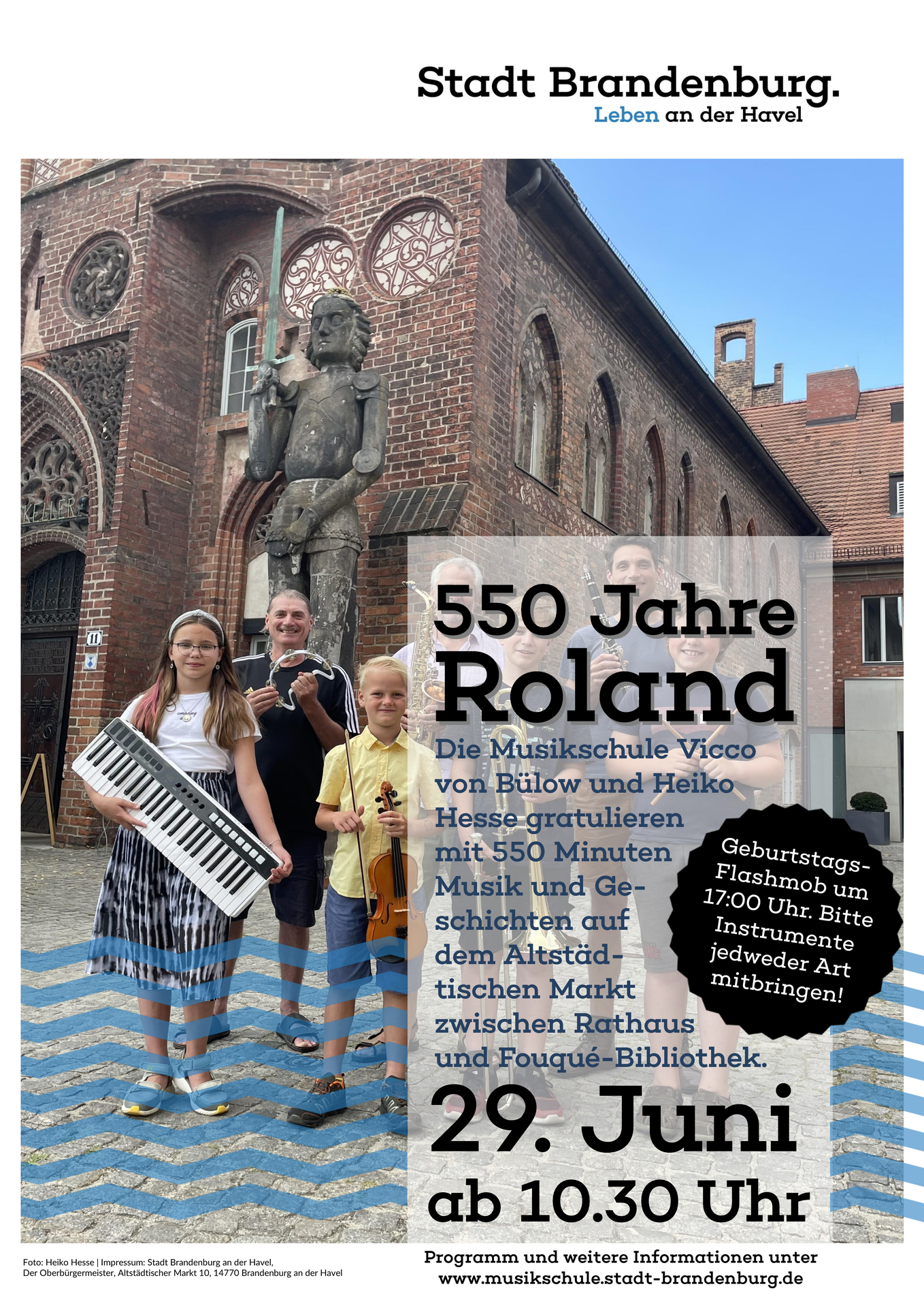 Mit einem ganzen Tag voller Musik und Geschichten feiert die Brandenburger Musikschule Vicco von Bülow den 550. Geburtstag des Ritters am Rathaus. 550 Minuten Musik für den Brandenburger Roland sind ein fürwahr würdiges Geburtstagsgeschenk.