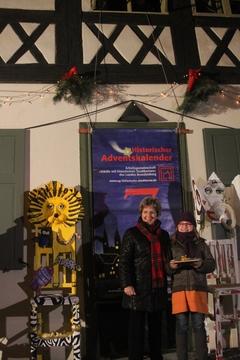 Das 7. Kalendertürchen des Historischen Adventskalenders 2013 öffnete Oberbürgermeisterin Dr. Dietlind Tiemann gemeinsam mit der 10-jährigen Eni Lampert, die seit ca. 5 Jahren in der Kinder- und Jugend-Kunst-Galerie künstlerisch tätig ist.