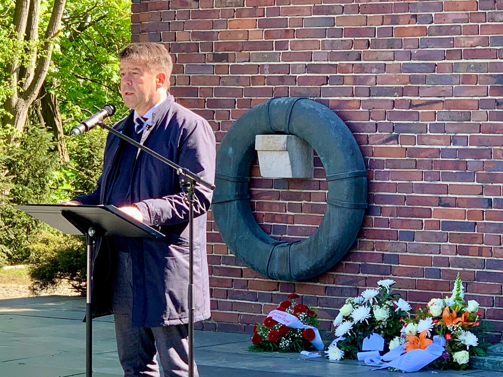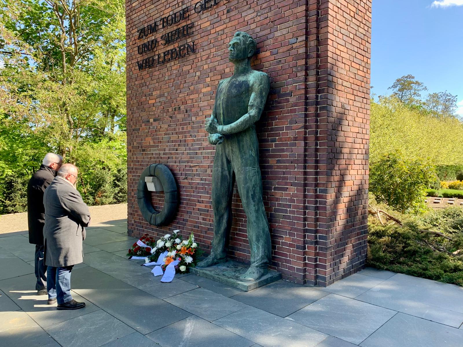 Am Ehrenmal am Marienberg, das bereits am 4. Mai 1947 für die im Zuchthaus Görden von den Nationalsozialisten inhaftierten und hingerichteten Widerstandskämpfer eingeweiht wurde – wenn auch noch in anderer Form – legte unter anderem Oberbürgermeister Steffen Scheller einen Kranz nieder. In seiner Rede erinnerte er an den Sommer 1940, als die NS-Justiz in einer Garage des Zuchthauses eine Hinrichtungsstätte einrichten ließ, weil bestehende Kapazitäten für die steigende Zahl von Todesurteilen nicht mehr ausreichten.