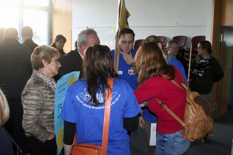 Unter der Schirmherrschaft von Oberbürgermeisterin Dr. Dietlind Tiemann verhandelten eine Stunde lang 18 Unternehmen und 18 gemeinnützige Einrichtungen miteinander. Die Koordination erfolgte, wie jedes Jahr, durch Ulrike Berger vom Freiwilligenzentrum.