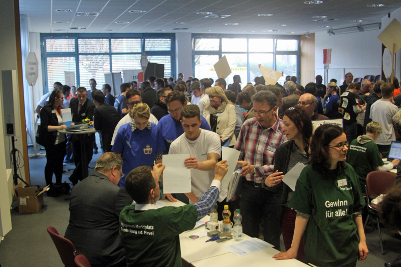 Unter dem bekannten Motto „Gewinn für alle!“ wurden am 27.03.2014 beim 8. Engagement-Marktplatz im Technologie- und Gründerzentrum (TGZ) 51 Verträge (Matches) abgeschlossen.