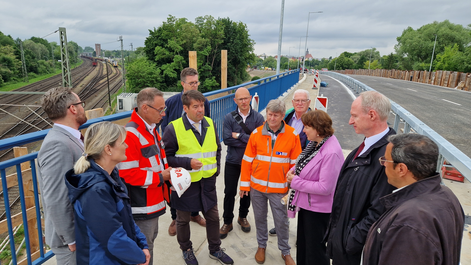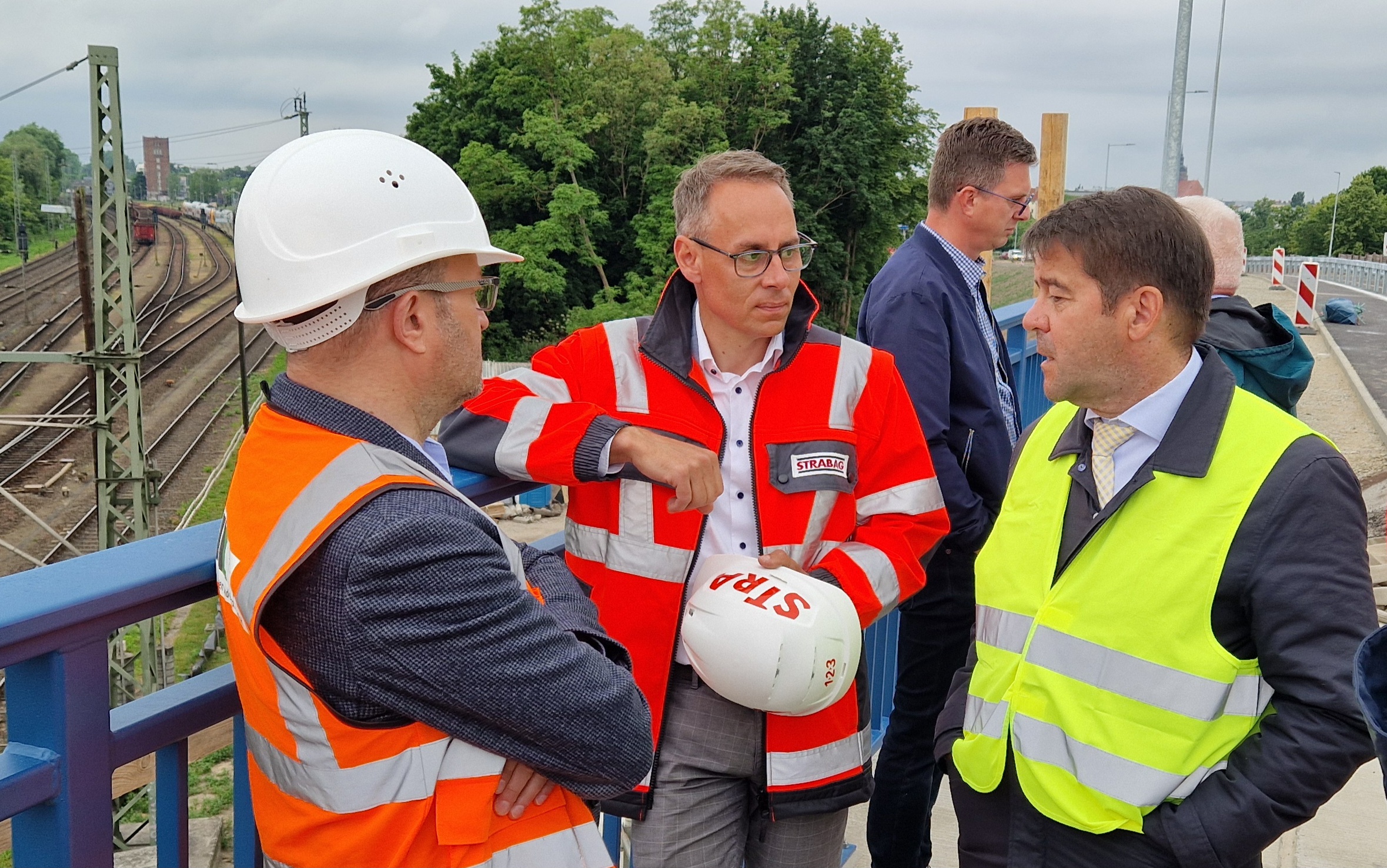 „Was wegen mangelnder Standsicherheit der alten Brückenbauwerke mit Startschwierigkeiten behaftet war und Verkehrsteilnehmenden einige Umwege aufbürdete, erwies sich im Bauverlauf dann doch als sehr zielorientiert. Für Brandenburg an der Havel ist die Freigabe der erneuerten Fahrbahn samt der beiden Brücken über die Bahn und über den Neujahrsgraben ein ganz wesentlicher Fortschritt, weil endlich die Tonnagebegrenzung auf einer der wichtigsten Stadtanbindungen wegfällt. Uns fällt ein Stein vom Herzen, wenn diese Schilder mit 11,5 Tonnen Achslast jetzt eingemottet werden können. Sodann ist es wichtig, dass das zweite Teilbauwerk genauso gut vorankommt.“