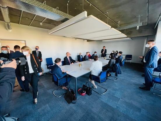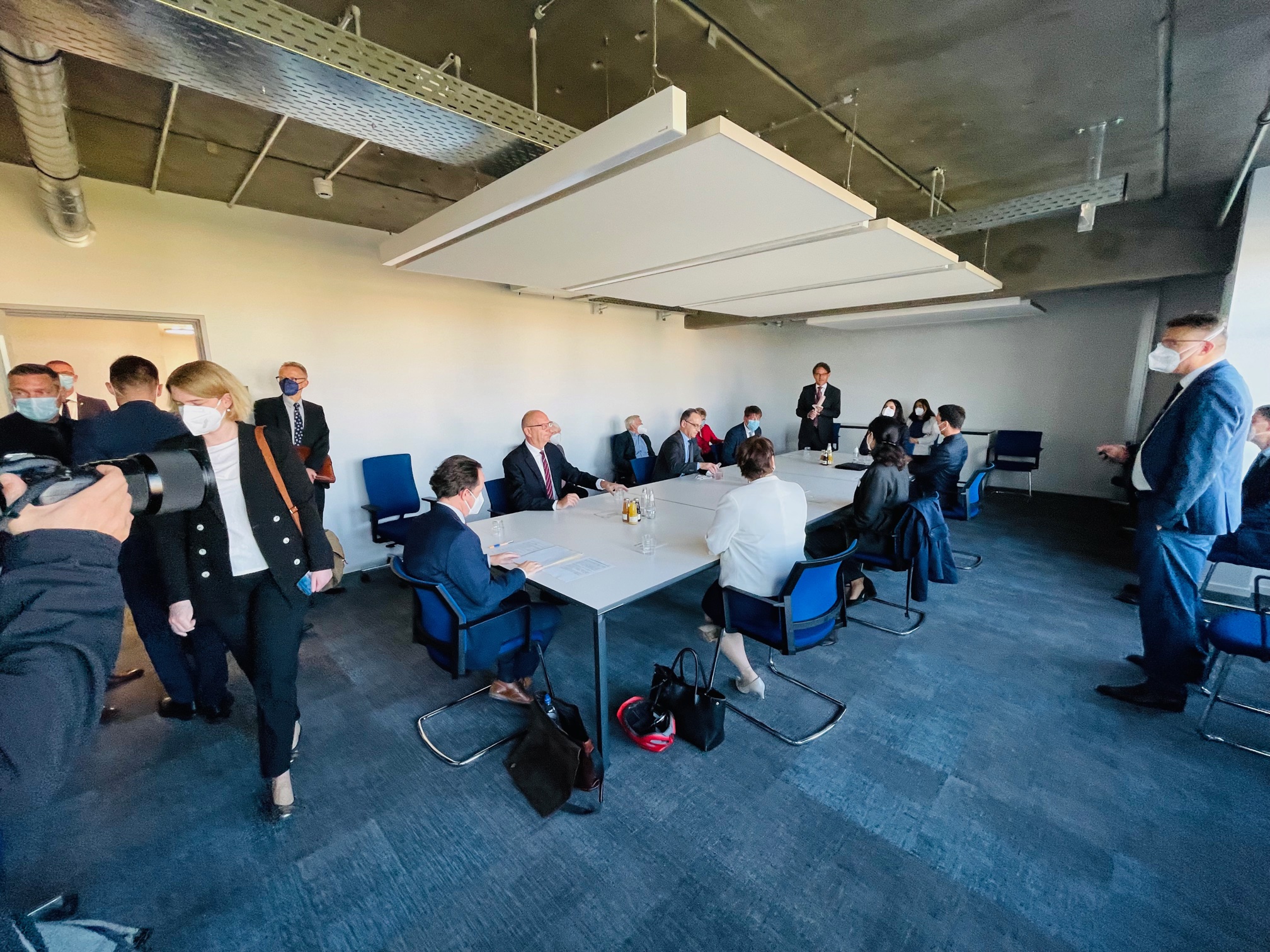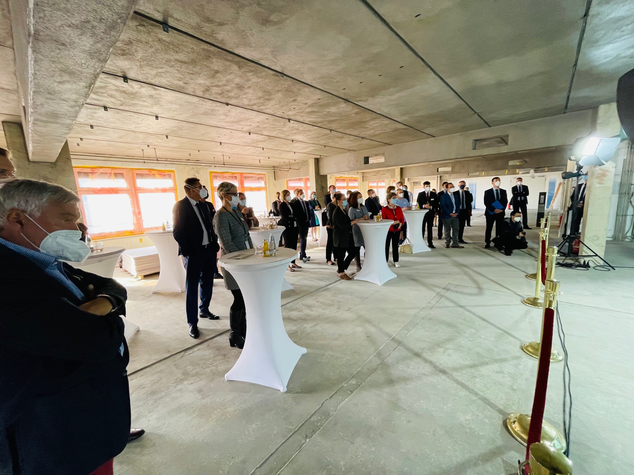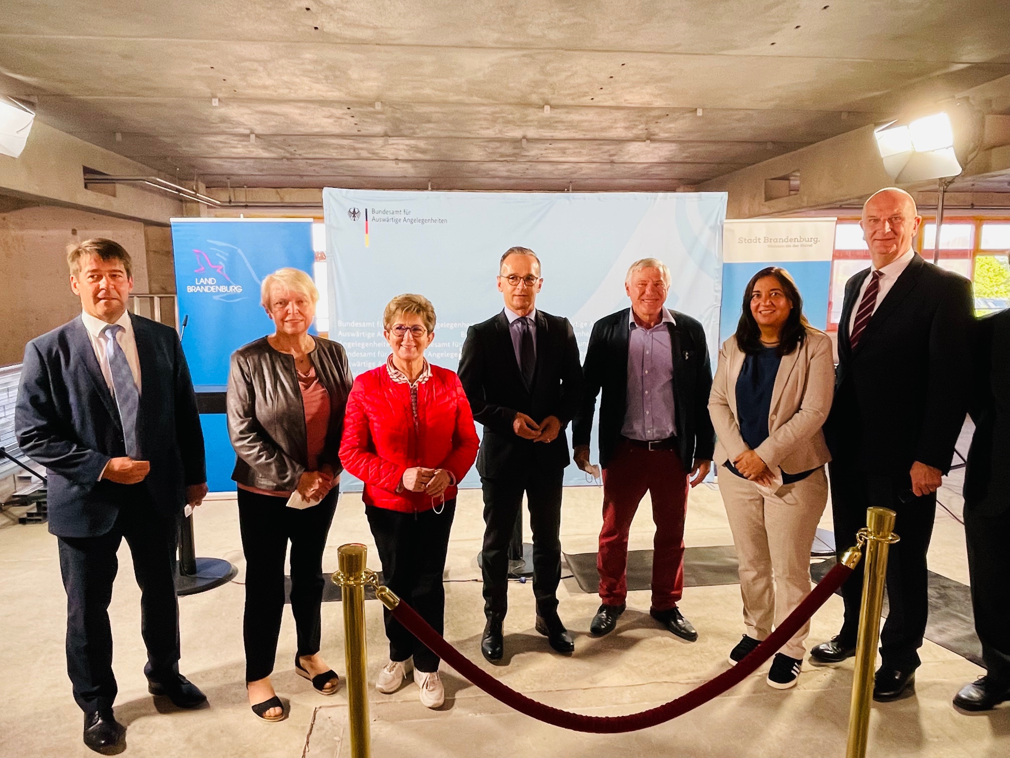 Zusammen mit dem Aussenminister Heiko Maas und dem Brandenburgischen Ministerpräsidenten Dietmar Woidke besuchte Oberbürgermeister Steffen Scheller den neuen Standort des Bundesamtes für Auswärtige Angelegenheiten und erkundigte sich nach dem Baufortschritt und die aktuellen Arbeitsbedingungen in der neuen Bundesbehörde. Derzeit arbeiten dort bereits über 200 Mitarbeiter, perspektivisch sollen es 700 werden.