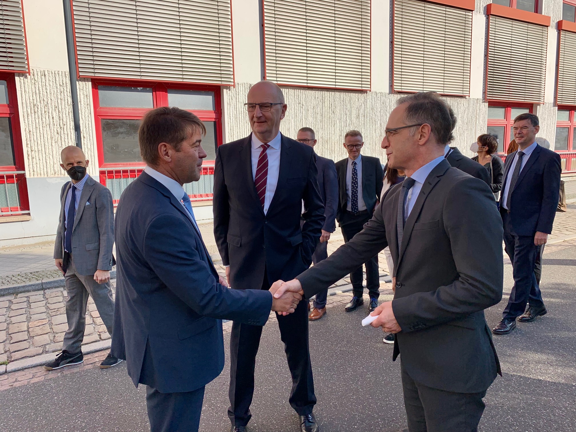 Aussenminister Heiko Maas und Ministerpräsident Dietmar Woidke besuchen mit Oberbürgermeister Steffen Scheller den neuen Standort des Bundesamtes für Auswärtige Angelegenheiten