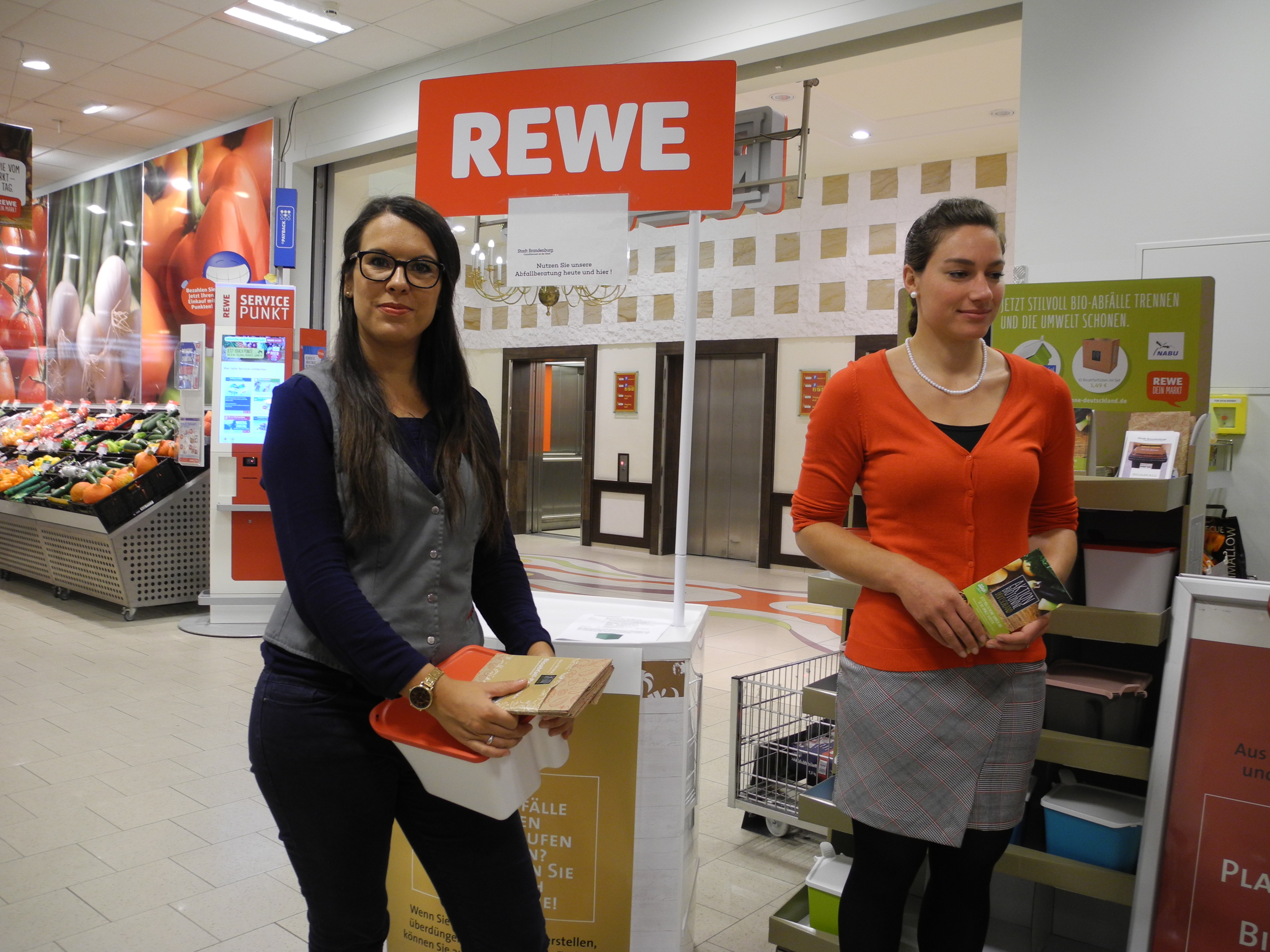 Neu an der „Aktion Biotonne Deutschland“: Die Aufklärung über die Biotonne findet zum ersten Mal im Lebensmitteleinzelhandel statt. Frau Voigt, Marktleiterin vom REWE-Markt in der Sankt-Annen-Galerie, die sich gemeinsam mit dem NABU an der deutschlandweiten Kampagne beteiligt, sagt: „REWE engagiert sich seit Jahren für verschiedene Nachhaltigkeitsthemen. Wir unterstützen jetzt im September und Oktober die Aufklärung der Verbraucher über die Biotonne. Produktverantwortung hört bei uns nicht an der Kasse auf, sondern wir wollen Verbraucher auch beim Getrenntsammeln und Verwerten von Abfällen unterstützen.“
