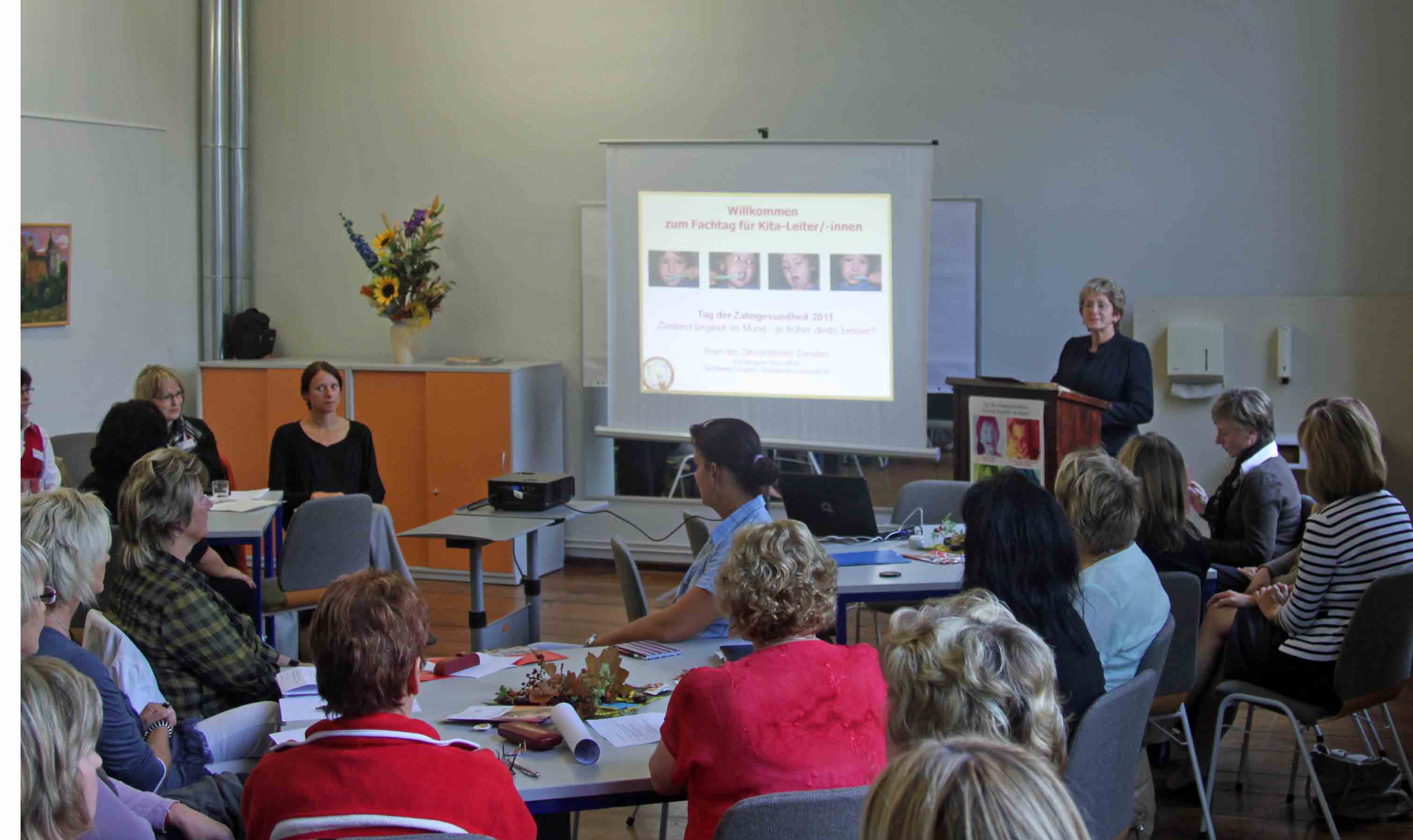 Dr. Petra Haak, die diese interessante Aktion 2004 in Frankfurt/Oder initiiert hatte, berichtete über Erfahrungen und Ergebnisse bei der Umsetzung praktikabler Handlungsleitlinien im Kita-Alltag und eine gezielte Elternansprache zur Förderung der Mundgesundheit und Vermeidung der frühkindlichen Karies.