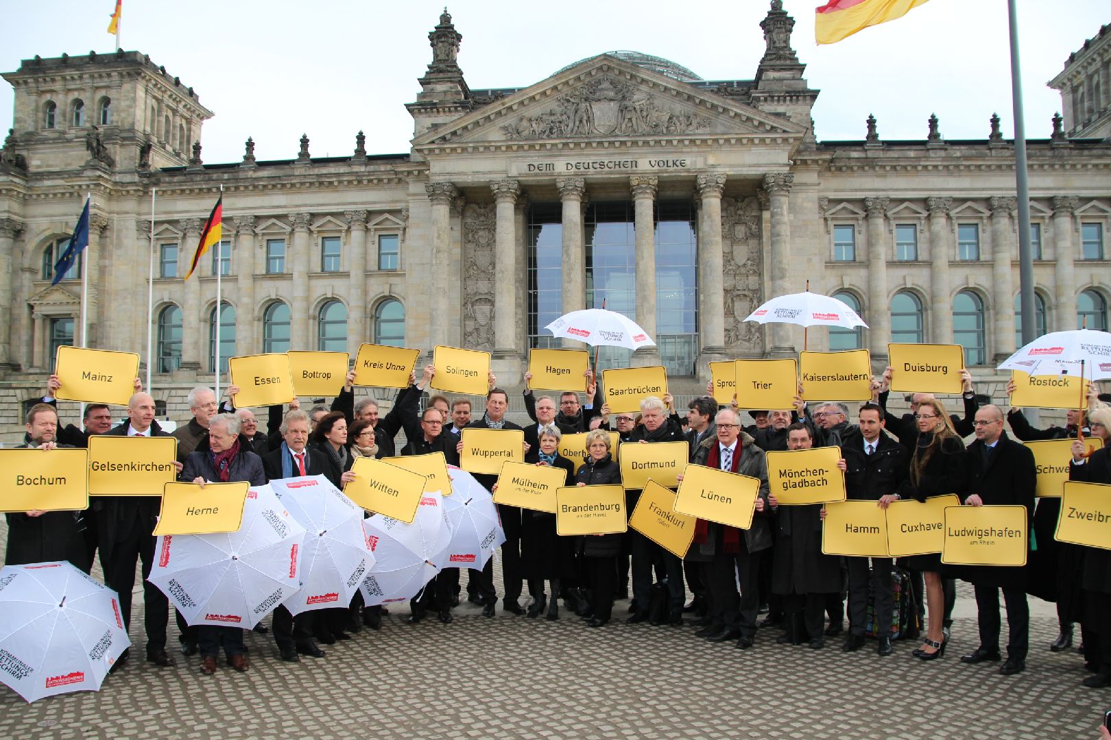 50 Oberbürgermeister vom Aktionsbündnis „Für die Würde unserer Städte“ zeigen sich nach Gesprächen im Bundestag erwartungsvoll und kämpferisch
