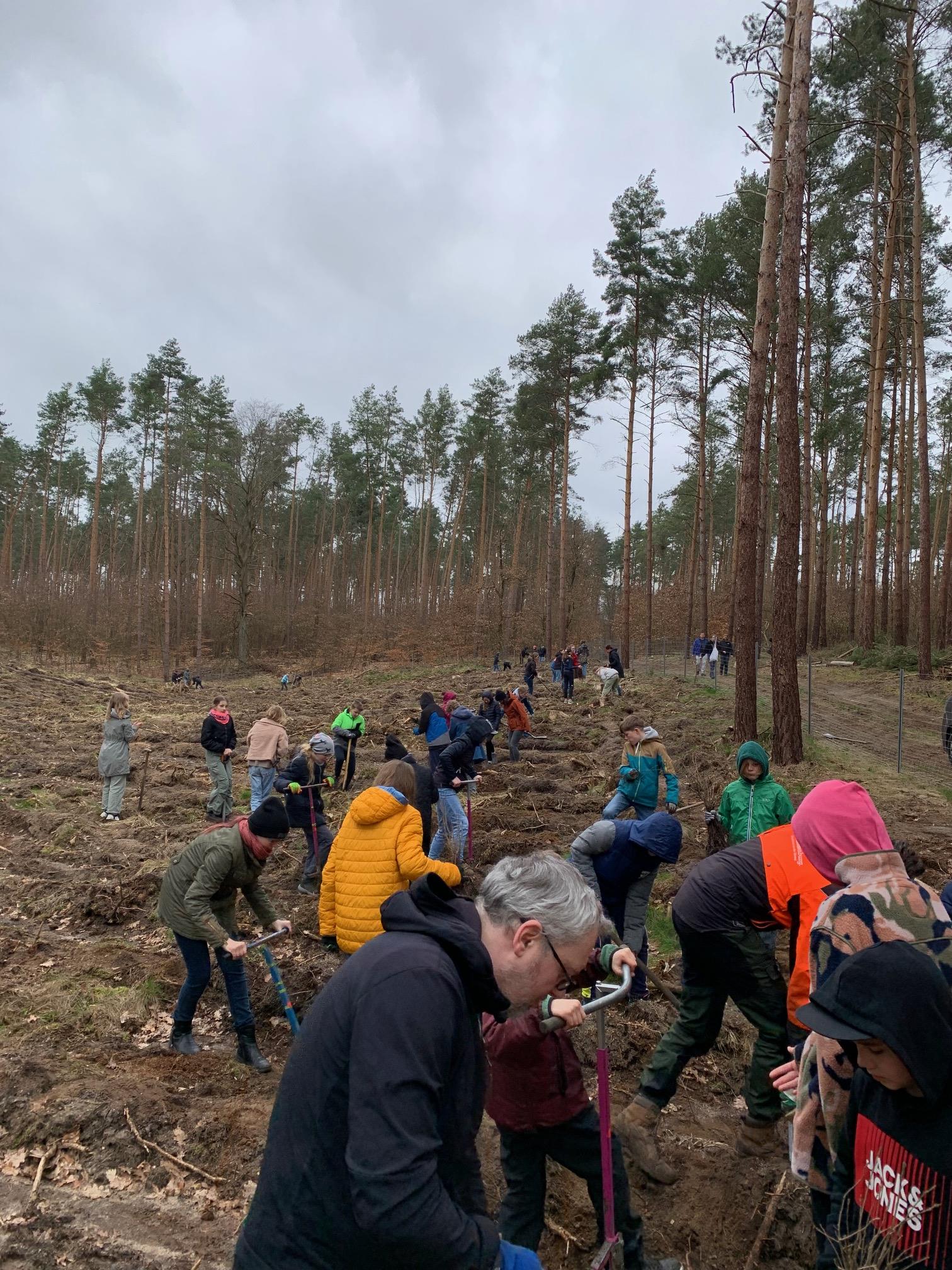 Über 50 Menschen sind der Einladung zur Pflanzaktion im März gefolgt und haben unter fachkundiger Anleitung von Stadtförster Thomas Meier und Kollegen insgesamt 2000 Jungbäume in den vorbereiteten Waldboden gesetzt. Nach einer Morgenandacht von Pfarrerin Ulrike Mosch begaben sich die Teilnehmenden in den für die Aktion vorgesehenen Bereich des Waldes. In diesem Jahr wurden Eichen, Linden und Tannen in das vorbereitete Areal des Stadtforstes gepflanzt. Trotz unbeständiger Wetterlage griffen die Kinder, Jugendlichen und Eltern voller Tatendrang zur Schaufel und leisteten somit einen aktiven Beitrag zum Umweltschutz und zum Erhalt des Brandenburger Mischwaldes.