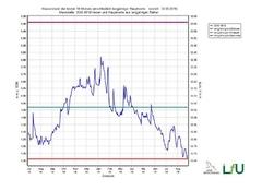 Die Grundwasserstände sind auf historisch niedrigem Niveau. So wurden im Anstrombereich unseres Hauptwasserwerkes zur Trinkwassergewinnung in Mahlenzien Ende August die niedrigsten je gemessenen Grundwasserstände festgestellt (siehe Grafik).